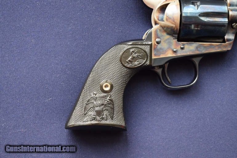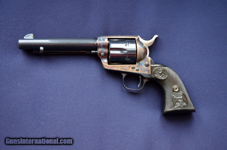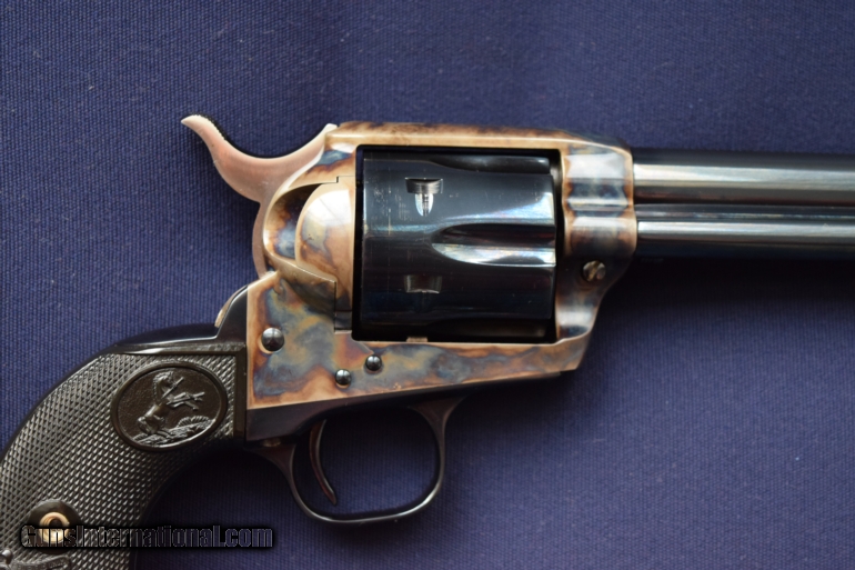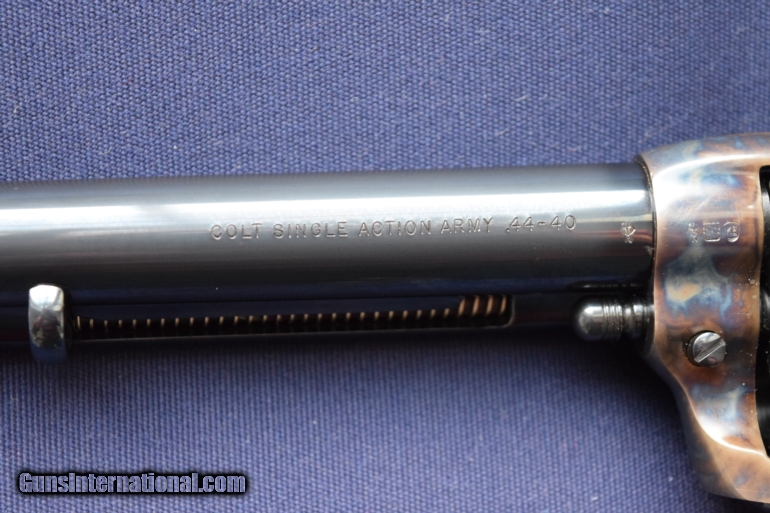 Description: Colt Single Action Army .44-40 manufactured in 1994, 5 1/2" barrel. Revolver is in excellent condition retaining nearly all of its original finish with a very faint drag line on cylinder. The action is perfect & bore is excellent. A very fine Colt that would make a great addition to any collector or Cowboy Action shooter. SOLD |