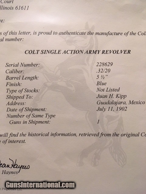 Colt SAA 32/20 Shipped to Guadalajara, Mexico 1902