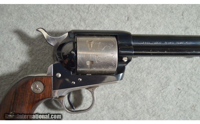 Description: No Colt revolver has earned greater fame than the single action army. .45 Colt SOLD Chambers: Adorned with filigree pattern Metal Condition: Very good with minor handling marks Wood Condition: Very good with minor wear and handling marks Bore Condition: Bright and clear with good rifling Barrels: 7 Inches Triggers: Single action Weight: 2 lbs 2 oz Item Location: Fort Worth, TX |