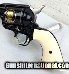 Description: Colt, Model Single Action Army, John Wayne Commemorative, .45 Colt, 4 3/4” Barrel, Blue / Gold, Engraved, “John Wayne” Signature In Gold On Back Strap, John Wayne Motifs In Gold, White Grips, Mfg. Approx. 1984, Made In USA, Serial # CJWC0197, Condition: Excellent Plus, showing little or no use, Bore: Bright. *******************************25080147/8************************************************************ *******Free Shipping(Lower 48 States only)*********************Layaway Available************************Trades Considered*******************FIREARMS MAY HAVE FOREIGN PROOF AND IMPORT MARKS******* If you are the winning , you will receive payment instructions in a confirmation email • Payment: We accept United State Postal Service Money Orders or Credit Cards Add 3.5% Service Fee- Visa, MasterCard & Discover.