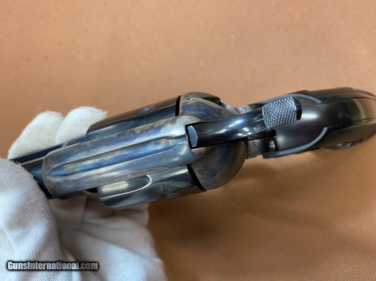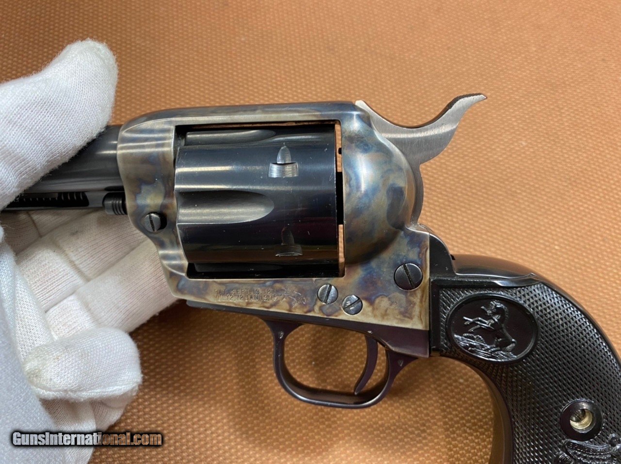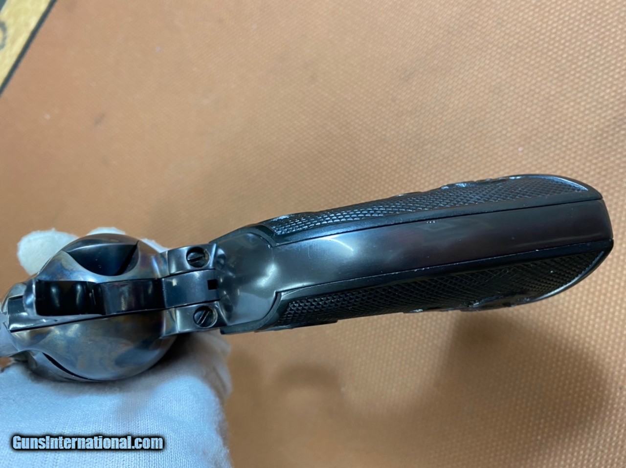 Description: ***SOLD*** Extremely nice Colt SAA early 3rd generation (1978) in 45 colt, 7.5" barrel. As you can tell by the pics, this revolver is super nice. It appears o us that it has never been fired... or at least extremely low rounds thru it. No visible turn line marks on cylinder. The only spot on it we can see, is a very small wear mark by the muzzle on the left side (please see picture). This will make a great addition to any collection! No box! Shipping, insured is $75 to Continental US only (AK & HI will be extra). No sales to California! SOLD Handgun Caliber: .45 Colt |