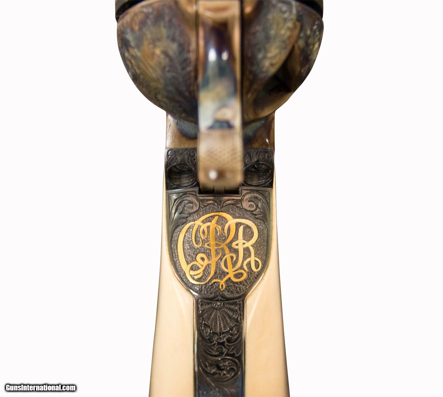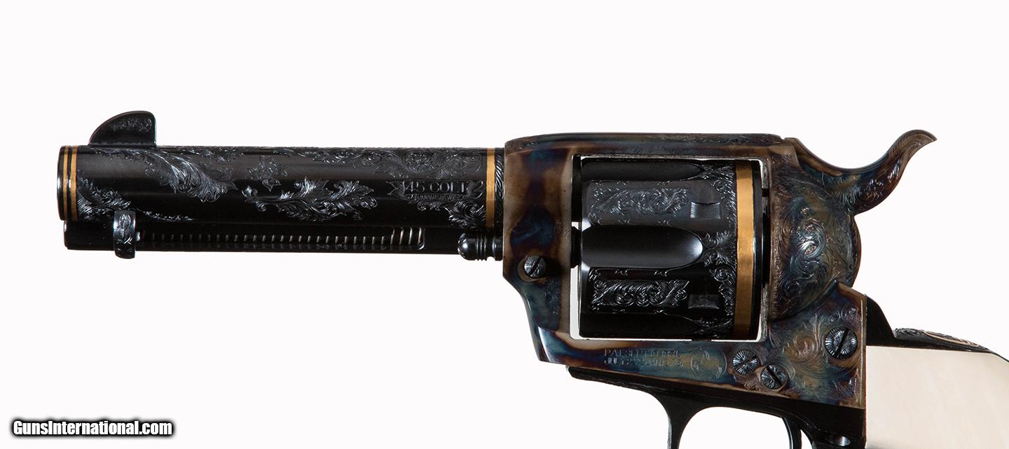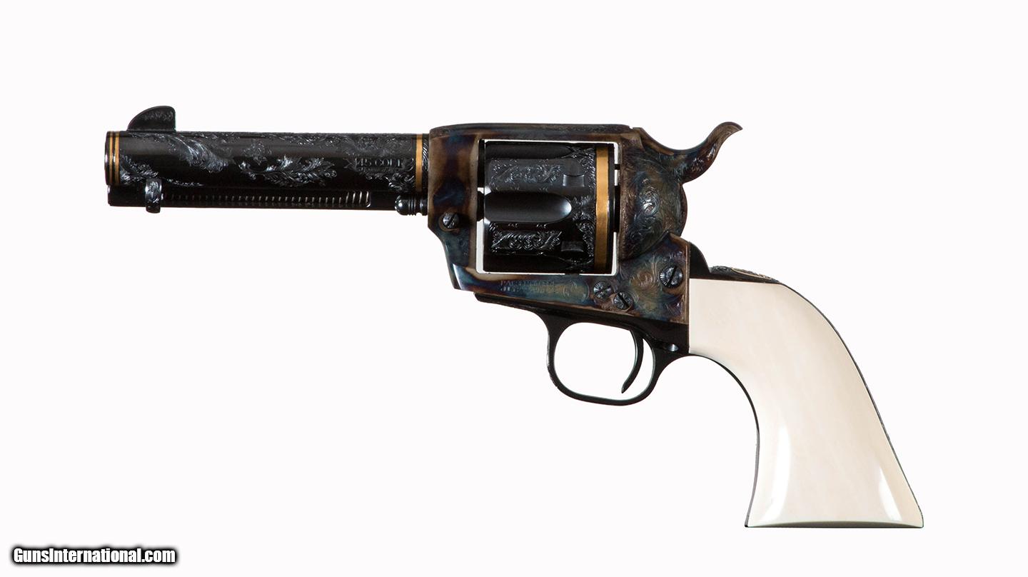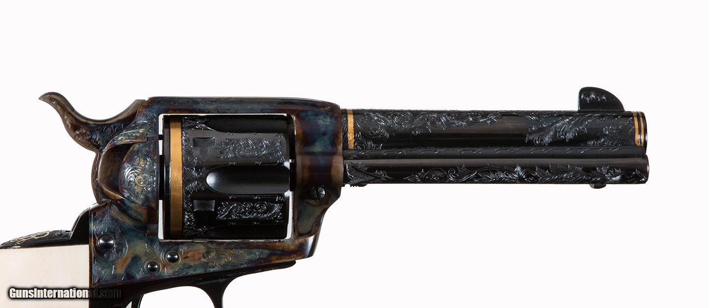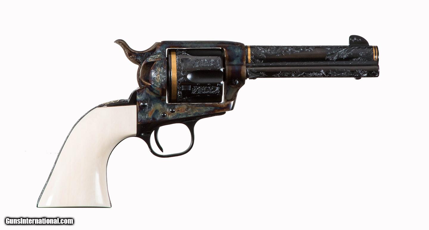 Description: This is a Colt SAA chambered in .45 Colt. The gun has a 4 3/4'' barrel and a good bore. This Colt SAA has been highly engraved and customized to have the previous owner's initials on the back of the grip. The engraving features gold enlay barrel bands, cylinder bands and the previous owner's initials. The revolver comes equipped with one piece ivory grips. The gun is being sold as is. SOLD Manufacturer: Colt Model: SAA Serial Number: S08408A Caliber Info: .45 Colt Bore Condition: Good Action: Single Item Location: NY |