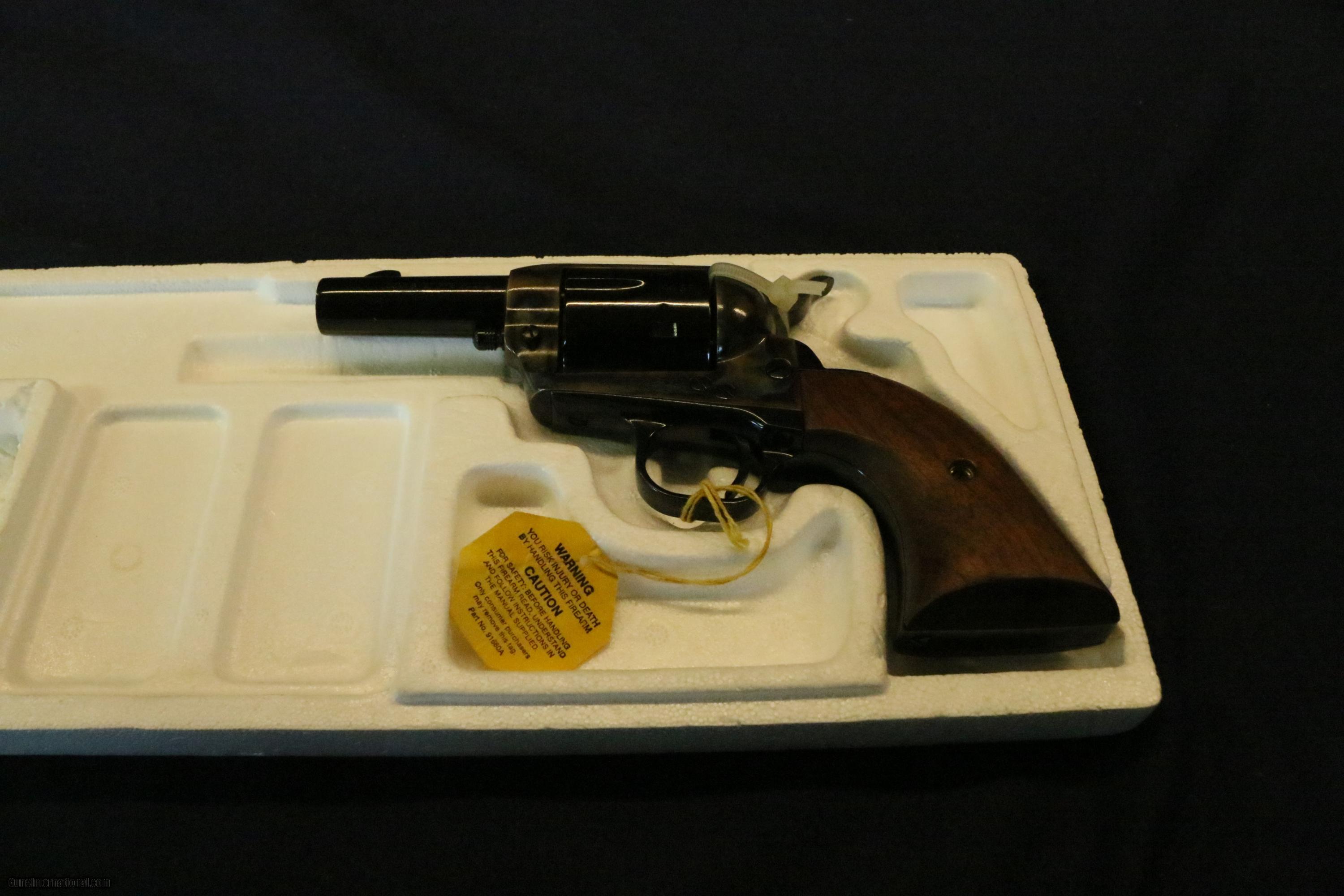 Description: As new condition 3" barrel cased and blued finish with wood grips. Original box and all of the paperwork. Un fired and possibly unturned this little Colt remains in outstanding condition. SOLD Curio/Relic: Yes |