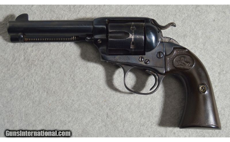 Description: Colt Single Action revolver, Serial Number 296427 Gun is in very good condition. .38 WCF SOLD Metal Condition: Good with minor handling marks Wood Condition: Good with minor wear and handling marks Bore Condition: Bright and clear with good rifling Barrels: 4 Inches Triggers: Single Action Weight: 2 lb 7 oz Sights: Front blade sight Item Location: Fort Worth, TX |
