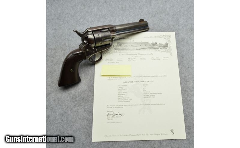 Description: Colt certificate showing brief history. .41 Long Colt SOLD Chambers: 6 Rounds Metal Condition: Good Barrels: 4 1/2 Inches Triggers: Factory, Single Action Sights: Factory, Fixed Item Location: Noblesville, IN |