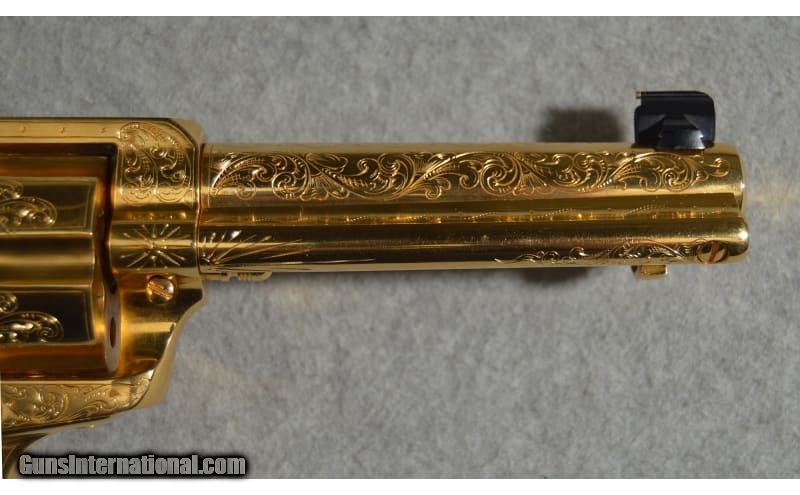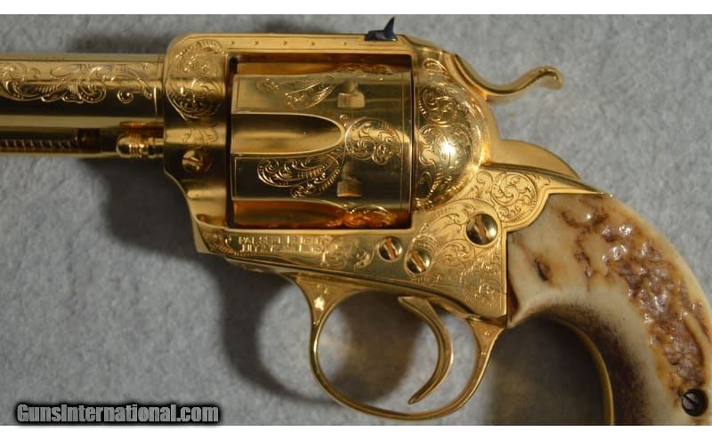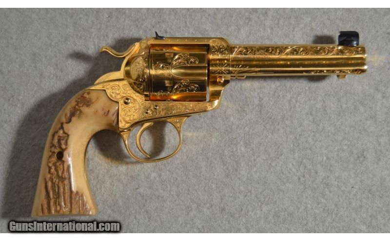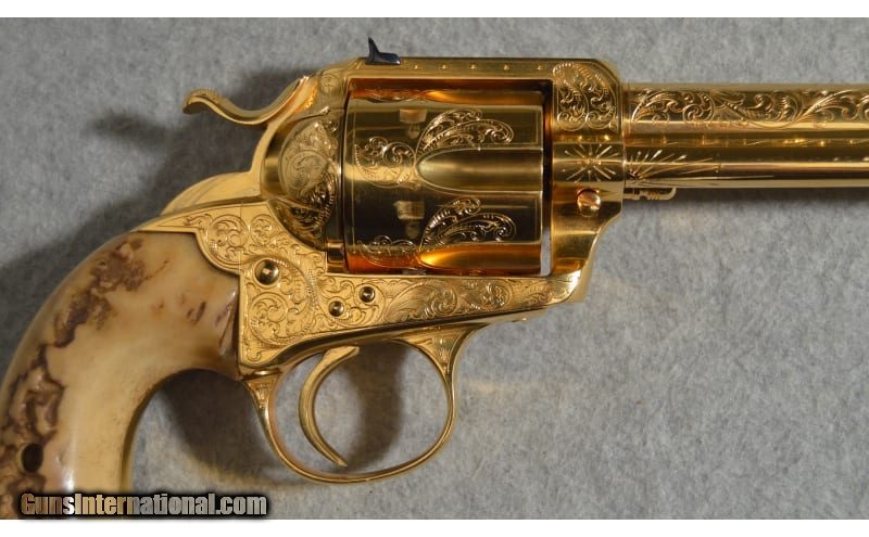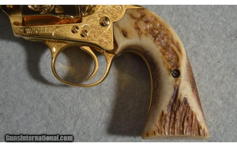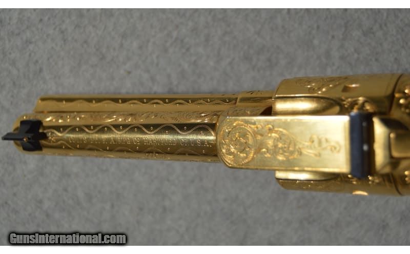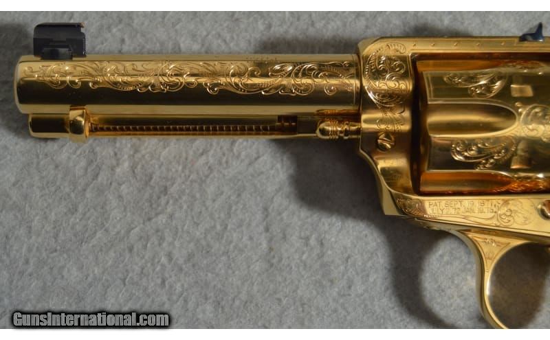 Description: Colt's classic Single Action Army design is a welcome piece that will be treasured in any collection. The intricate engraving makes this a true item of beauty. Serial number is 243684 .22 Long SOLD Metal Condition: Very Good with Minor Handling Marks Wood Condition: Very Good with Minor Wear Bore Condition: Bright and Clear with Good Rifling Barrels: 4.5 inch Triggers: Single action Butt Pad: Polished wooden grips Weight: 2 lb 12 oz Sights: Rear notched sight/front post sight Item Location: Fort Worth, TX |