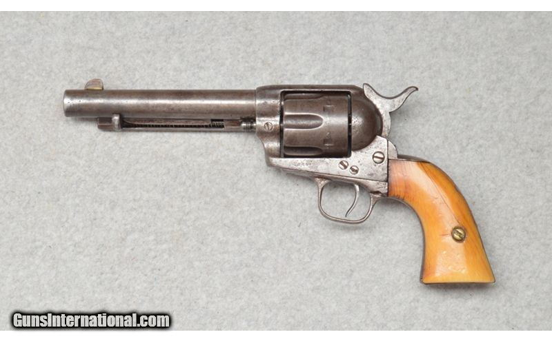 Description: 1876 Colt Single Action Army in good condition with only minor pitting and rust. Grips are broken. SN: 25142 .32-20 Winchester SOLD Metal Condition: Good Bore Condition: Good Barrels: 5.5 Weight: 2 lb 3 oz Item Location: Fort Worth, TX |