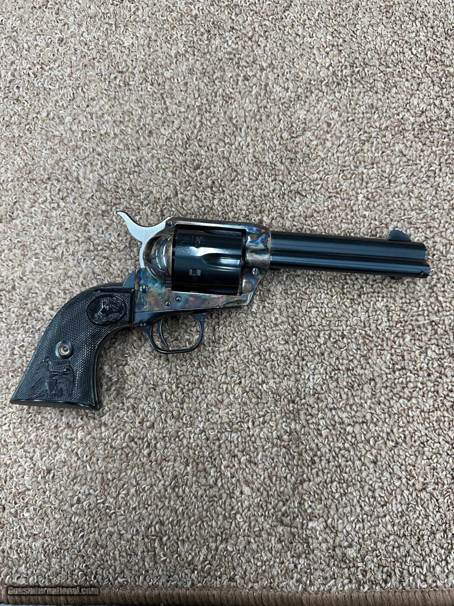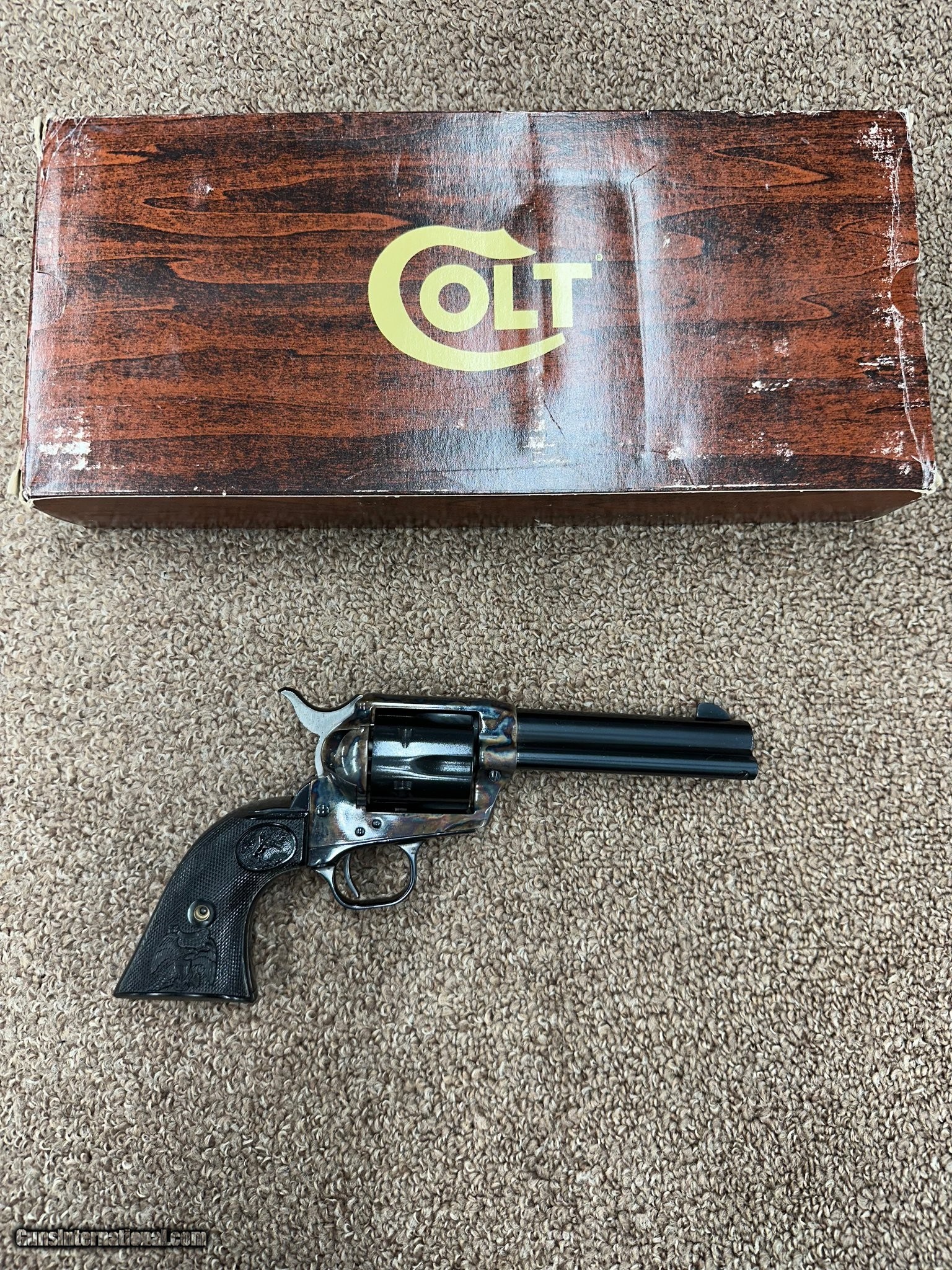 Description: Guns Listing ID: 554595 Colt Single Action Army in like new condition. No cylinder turn marks, or scratches. Pistol is immaculate. Some dried oil may be present. Comes with original box. SOLD Manufacturer: COLT Model: SINGLE ACTION ARMY Caliber Info: .357 MAG Condition: Used - Non-Certified Barrels: 4.25 BARREL Action: REVOLVER Finish: case hardened |