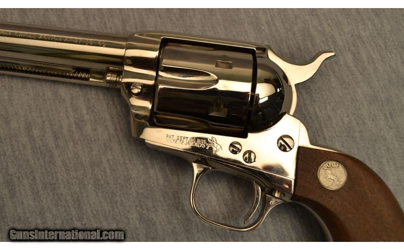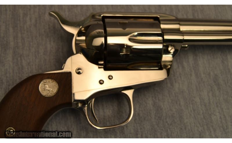 Description: Colt Single Action Army chambered in .38-40 Winchester. This handgun is in excellent condition and comes with original collector/display box. .38-40 Winchester SOLD Metal Condition: Excellent Wood Condition: Excellent Bore Condition: Excellent Barrels: 5.5" rifled Triggers: factory Stock Dimensions: wooden grips with Colt emblem Weight: 2.35 lbs Sights: Blade front sight with notched backstrap rear sight Item Location: Cheektowaga, NY |