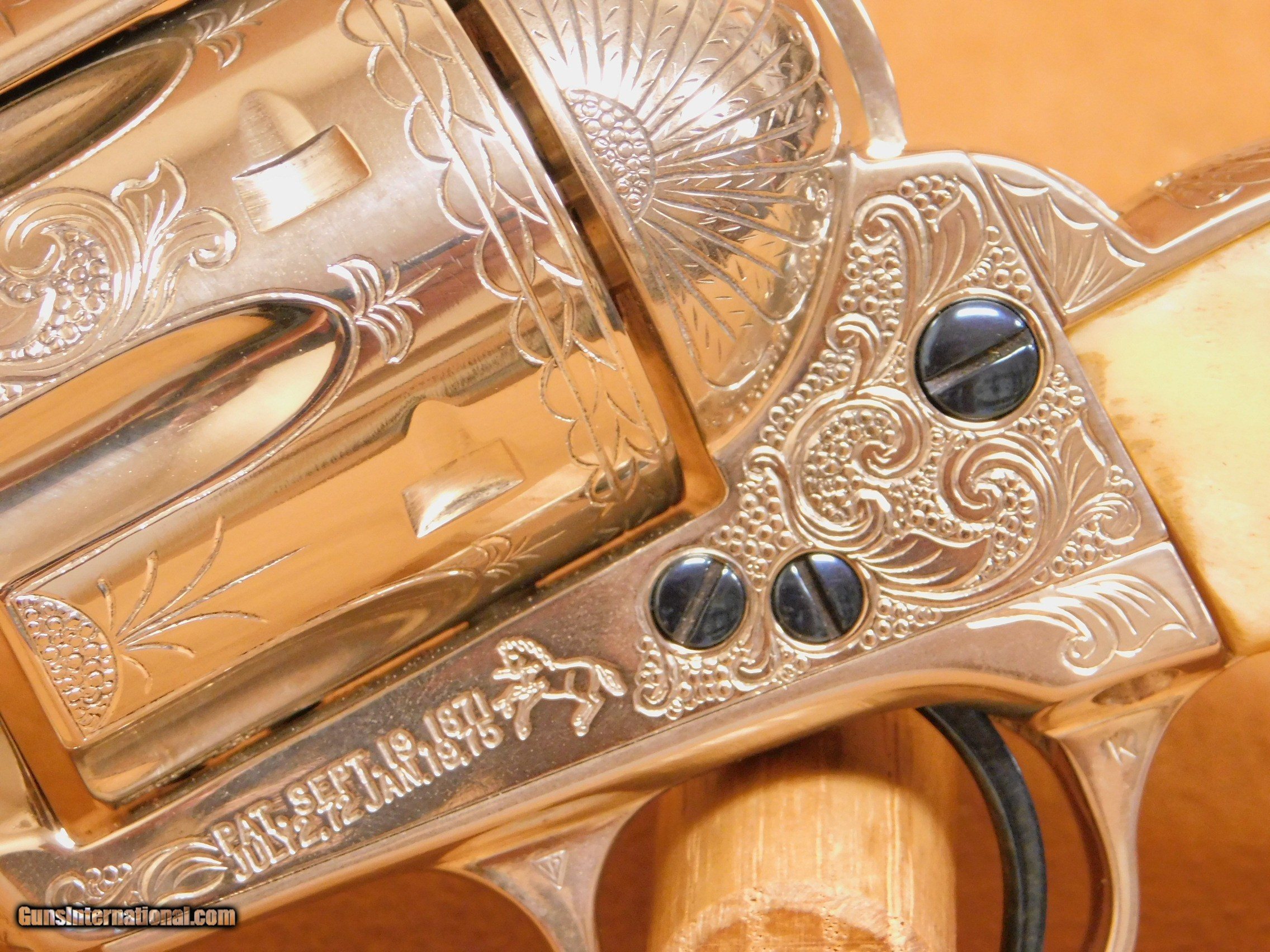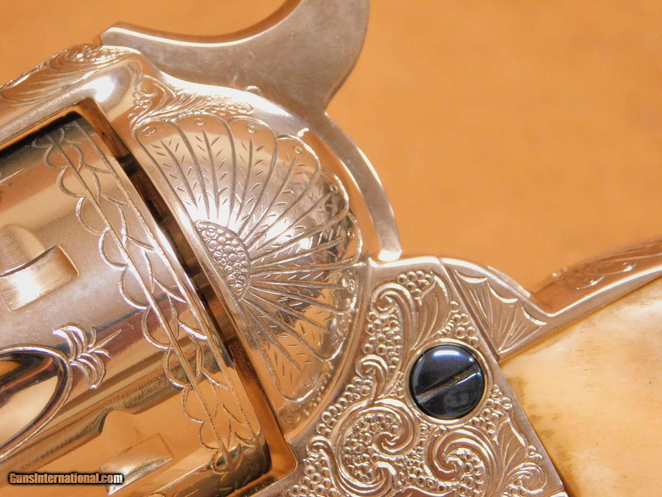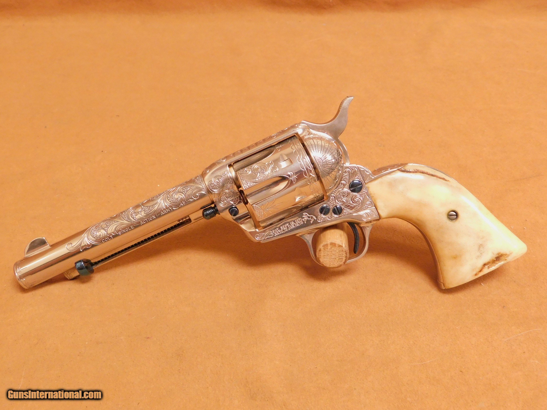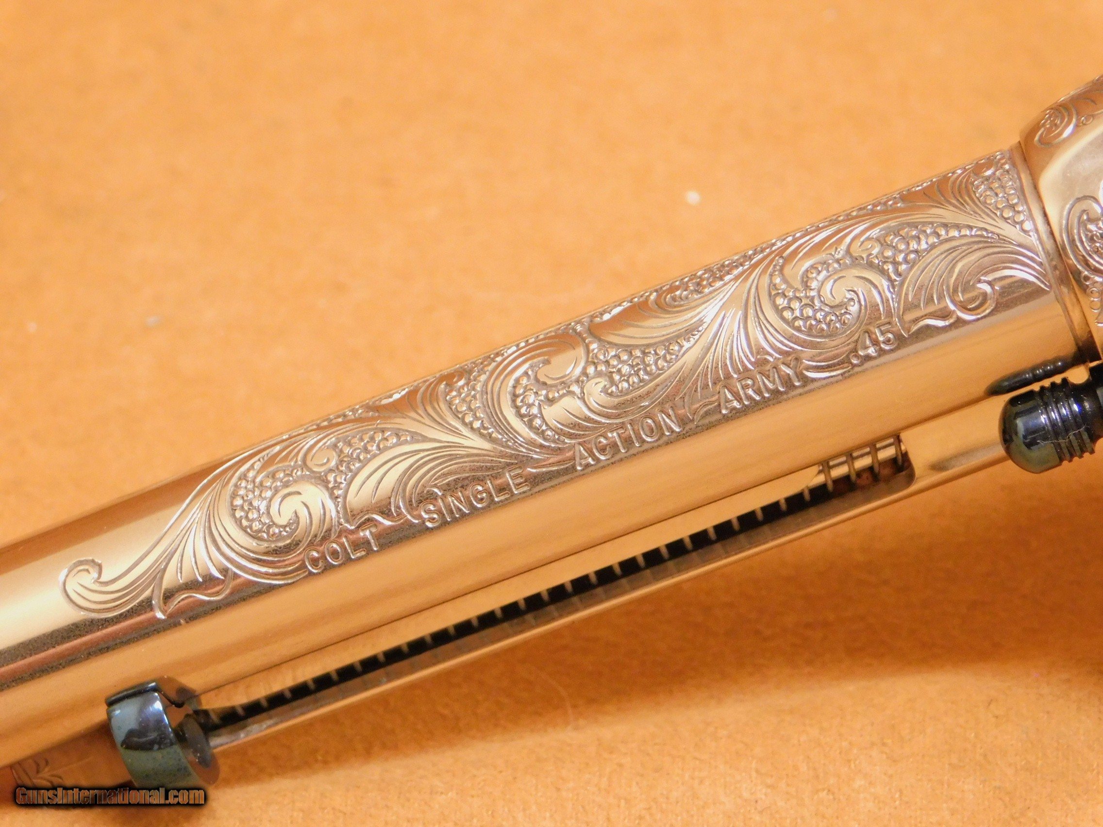 Colt Single Action Army (45 LC, Silver Plate, ENGRAVED: C+ Coverage) SAA