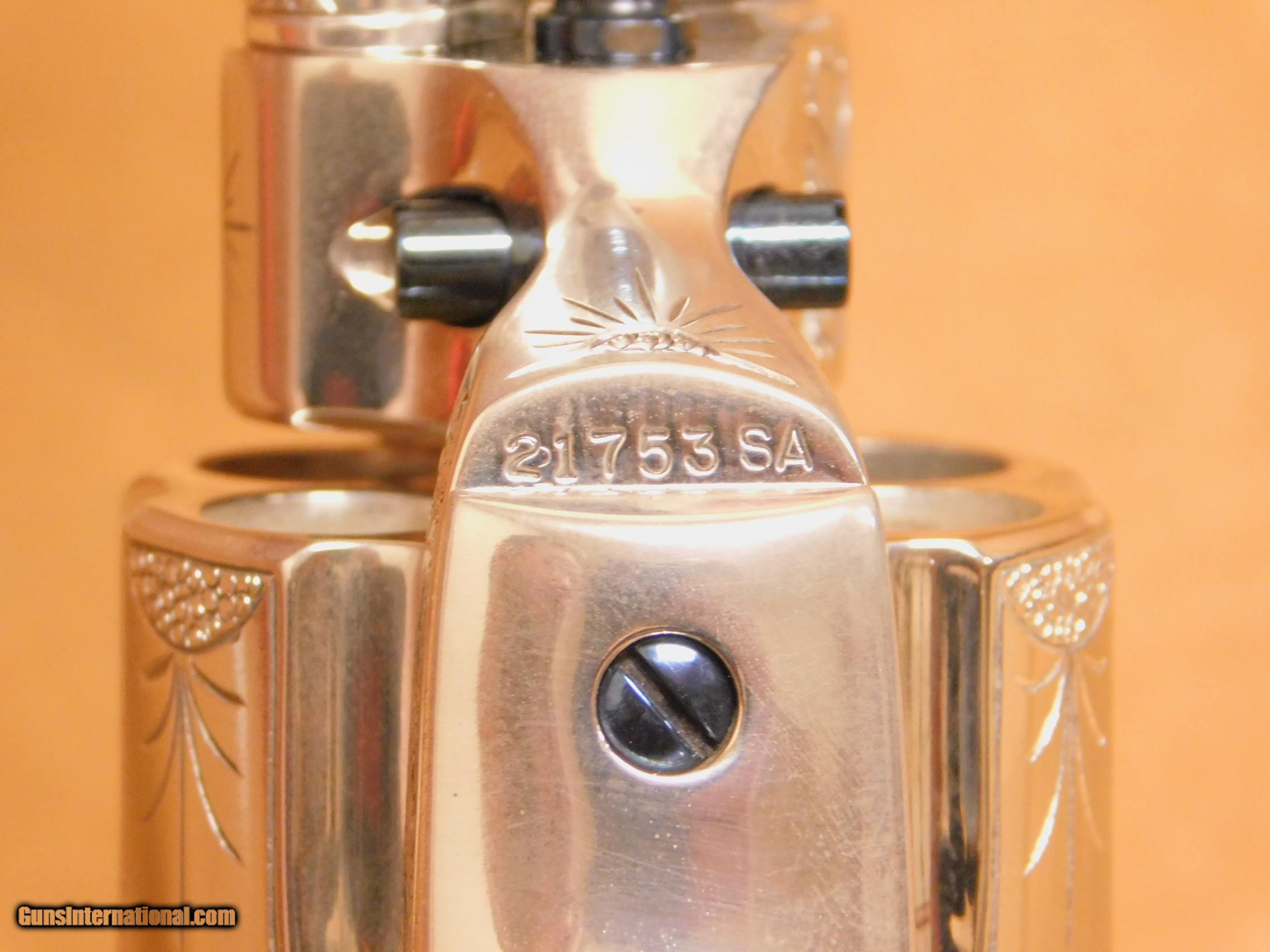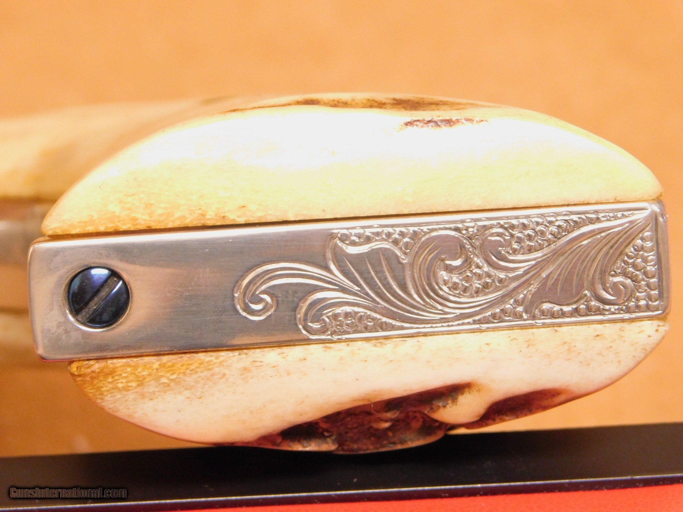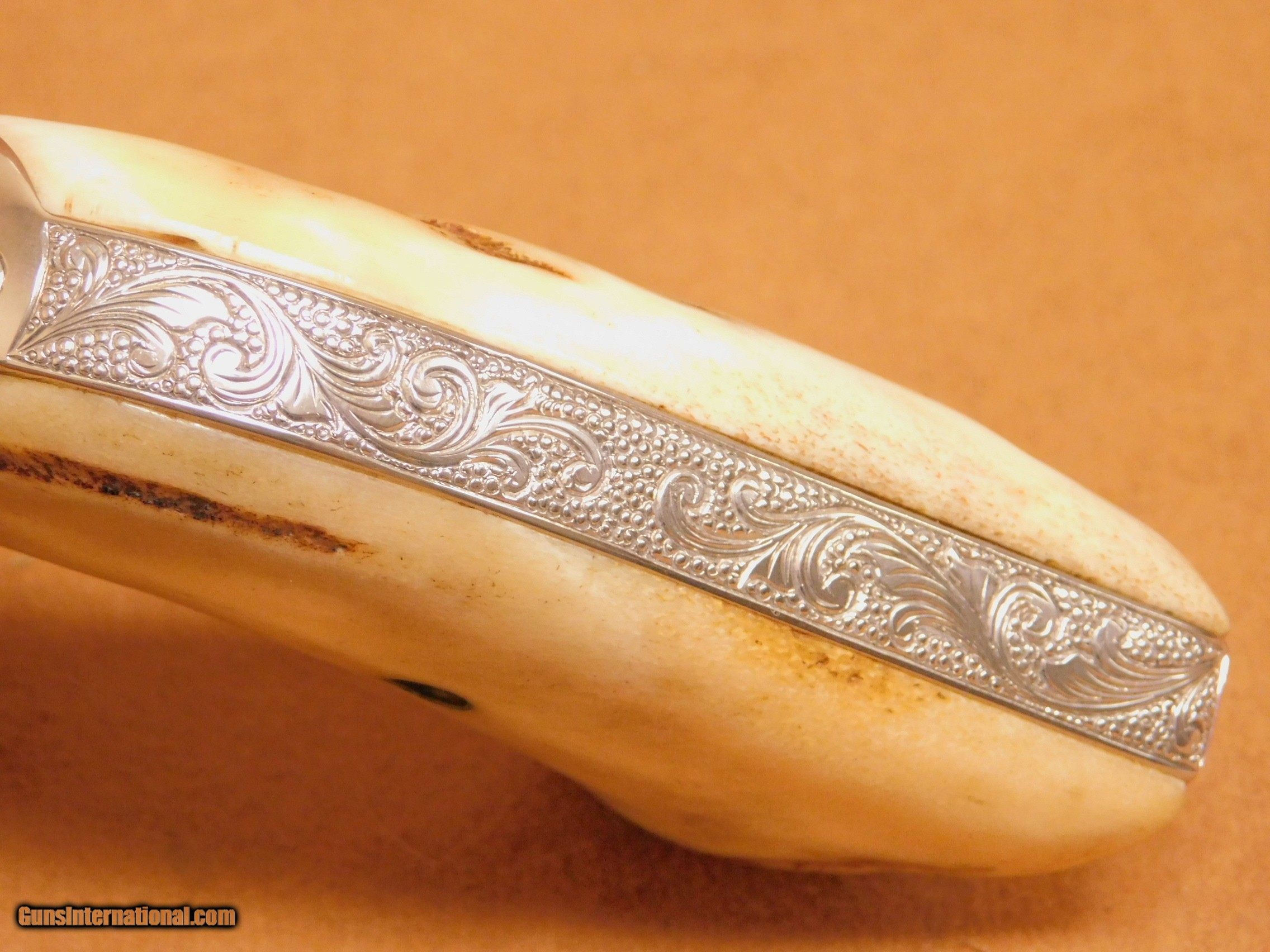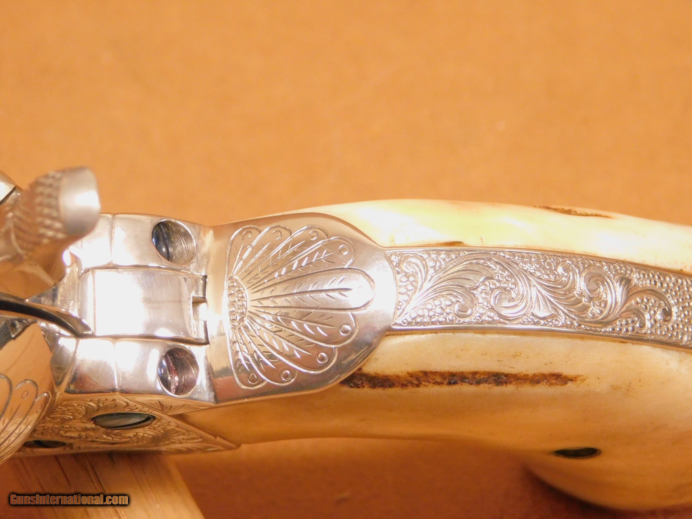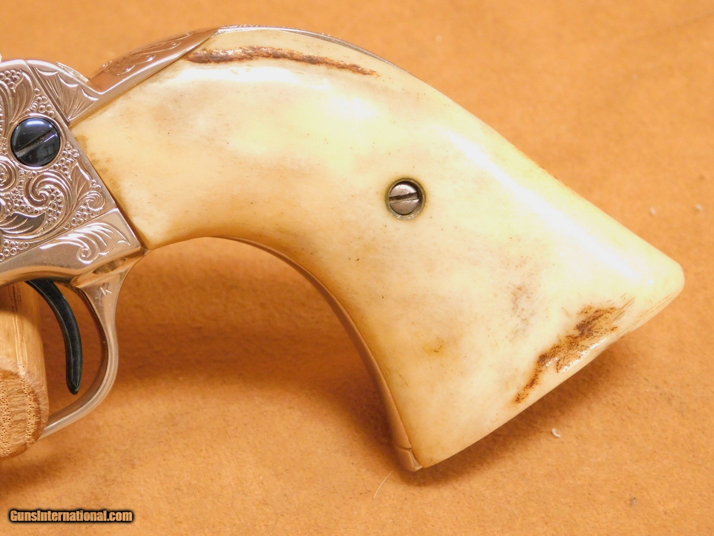 Description: Shipped in 1959, this non-factory engraved Colt SAA displays a well executed Helfricht style scroll with a punch dot background in a C+ level coverage. Polished stag grips accent the silver plate finish. It has a 5-1/2-inch barrel chambered in .45 Colt. The gun is mechanically perfect and appears to be unfired. All items are also available for sale in our brick & mortar store and are subject to prior sale. Think long, think wrong. Payment On firearms, we typically only accept credit cards or money orders/cashier's checks.