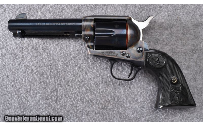 Description: Gun is in excellent overall condition showing little use. Beautiful case coloring and excellent bore. Complete with box. .45 Colt SOLD Metal Condition: Excellent Bore Condition: Excellent Barrels: 4 3/4 Triggers: Factory Butt Pad: Checkered Black Colt Grips Weight: 2 lbs. Sights: Blade Front - Integral Notch Rear Item Location: Wheeling |