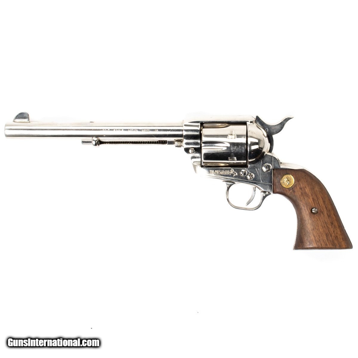 Description: Guns Listing ID: 602118 This Colt Single Action Army revolver comes with an OWB holster, bandolier, and extra grips. Get the best bang for your buck when you get a Certified Used Firearm . When you see the Certified Used stamp on any of our firearms, you can be confident that you‚re getting exactly what you want – a gun only in very good to excellent condition and held to the highest quality standard. All Certified Used Guns come with a ‚no questions asked‚ return policy . Manufacturer: COLT Model: SINGLE ACTION ARMY Caliber Info: .45 LC Condition: Used - Certified Barrels: 7.50" BARREL Action: REVOLVER Finish: nickel Weight: 2.4 Price: $1,899.99 Contact Seller |