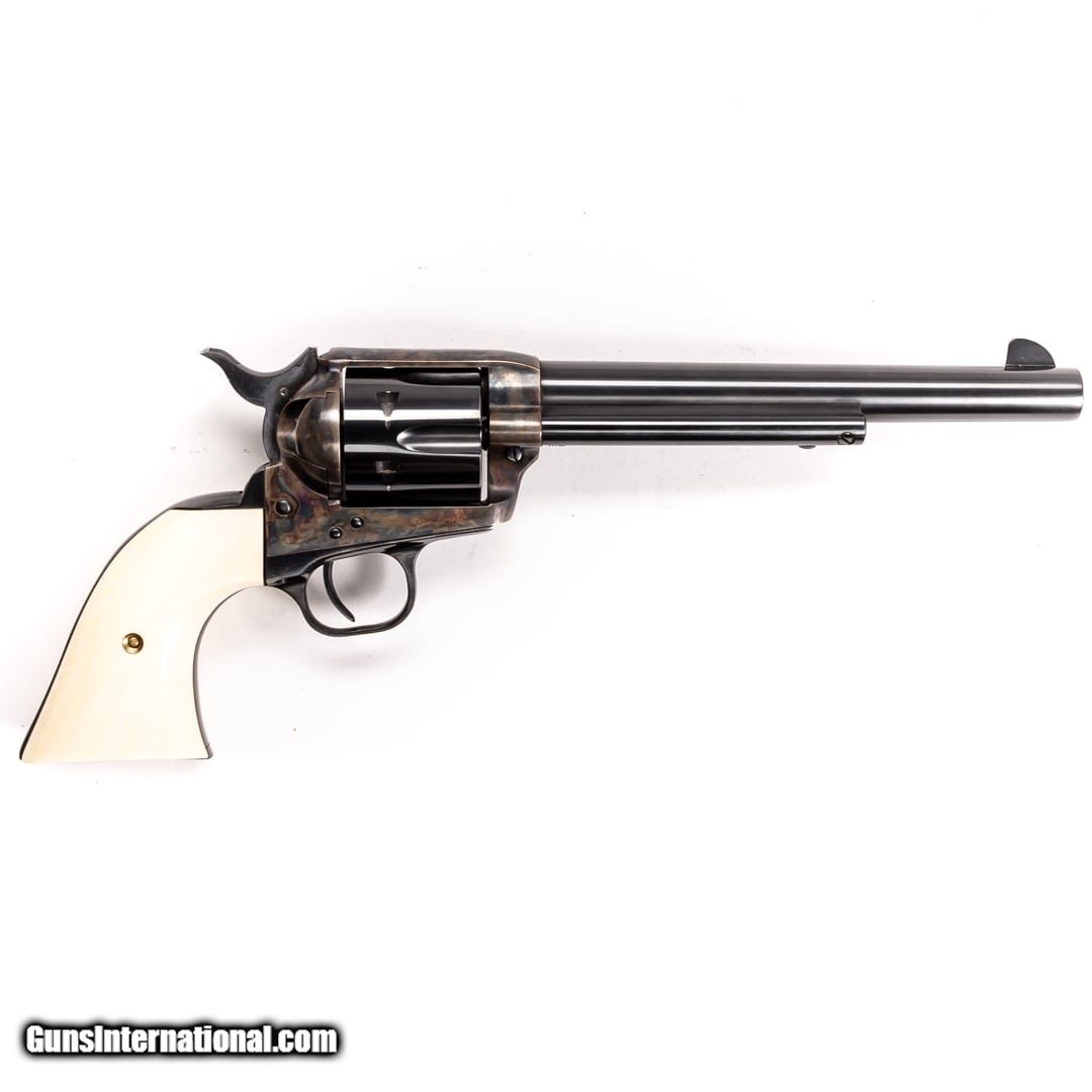 Description: Guns Listing ID: 287174 There's not a Colt revolver that's earned greater fame than the Single Action Army. Unsurpassed in design, performance, line, and form, no more sculptural and practical Colt has ever been created. This model is in very good condition, with marks on the cylinder and the end left side of the barrel. It has natural white grips. SOLD Manufacturer: COLT Model: Single Action Army Caliber Info: .45 LC Condition: Used - Certified Barrels: 7.5 BARREL Finish: CASE HARDENED |