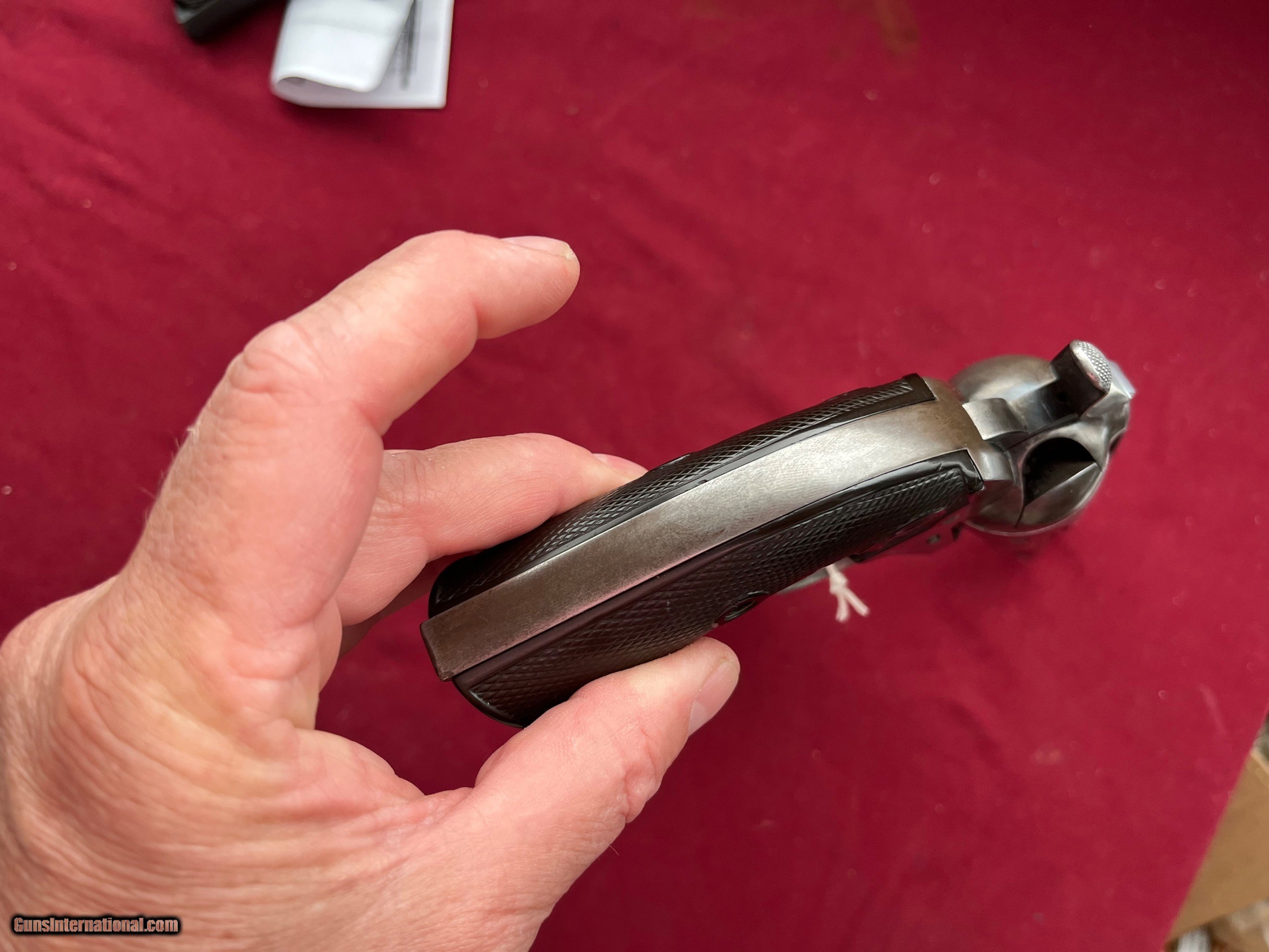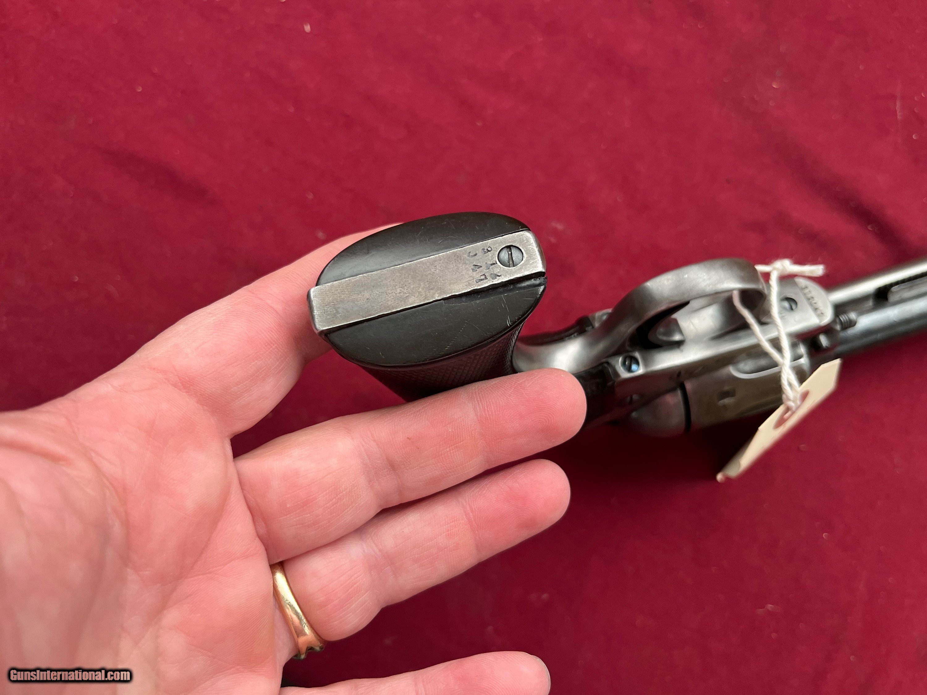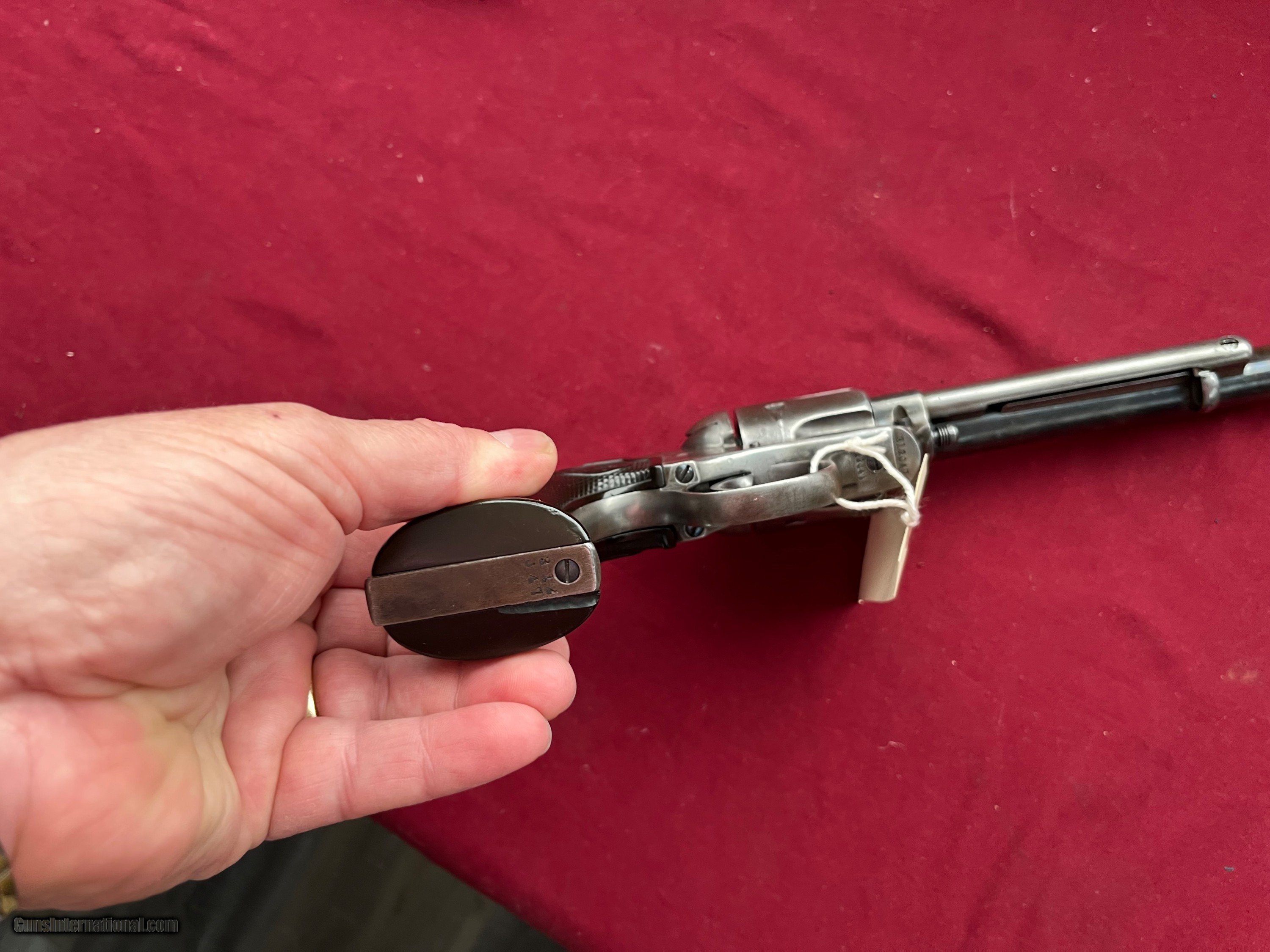 Description: COLT SINGLE ACTION REVOLVER ( BISLEY MODEL) CALIBER 32 W.C.F. SER# 312047 MADE IN 1909. MATCHING NUMBERS. METAL SHOWS A GRAY / BROWN PATINA. NICE SOLID GRIPS. ACTION IS TIGHT AN CRISP AND FUNCTIONS FINE. A NICE SOLID BISLEY MODEL . FAIR SHOOTABLE BORE WITH SOME LIGHT PITTING. EASTERN BRANCH FIREARMS ADD 40.00 SHIPPING – HANDGUN USPS PRIORTY MAIL ADD 50.00 SHIPPING – LONG GUNS USPS PRIORTY MAIL OPTIONAL INSURANCE IS AVAILABLE AT 1.25 PER 100.00 Questions e-mail or call Glen at Eastern Branch Firearms 207-215-5021 TERMS – PLEASE READ BEFORE I DO NOT HAVE A LAYAWAY OPTION ( WE ACCEPT CREDIT CARDS ) -- I GET ALOT OF REQUEST FOR TRADES, I WOULD PERFER NOT TO DO TRADES ON MY INTERNET LISTINGS PAYMENT OPTIONS- We accept money orders, cashier’s checks , bank checks. sorry no personal checks. We accept all major credit cards please add 3% to the ’s cash discount price.(Shipping within the state of Florida - Florida Residents must pay sales tax) .Handguns and long guns do need to be shipped separate. PLEASE do not send payment via FED EX . USPS & UPS are fine. Thank you. We include a signed copy of our FFL with each firearm shipped. SAFTY NOTICE- Buyer is solely responsible for determining that a used gun is safe to shoot. The firearms offered have not been test fired but have been given a visual inspection only for purposes. It is a requirement that every used firearm is inspected by a qualified gunsmith before firing. By , the buyer agrees to hold seller harmless against damages, injury, or death caused by defective merchandise. RETURN POLICY- All firearms come with a 3-day non firing , non messing with ( turning srews ,taking apart,removing parts, scoping. firing, cleaning or messing with in anyway) inspection/return privilege.Inspection is based on a visual review of the gun to confirm the gun is in the condition stated. In the case of a return, buyer pays all shipping charges & if paid for with a credit card buyer absorbs the 3% credit card charges . So please ask questions BEFORE you bid. Thanks for Looking and Good Luck!! U.S. sales only, no exports…this includes antiques. I will ship to third party for exporting SOLD Curio/Relic: Yes |