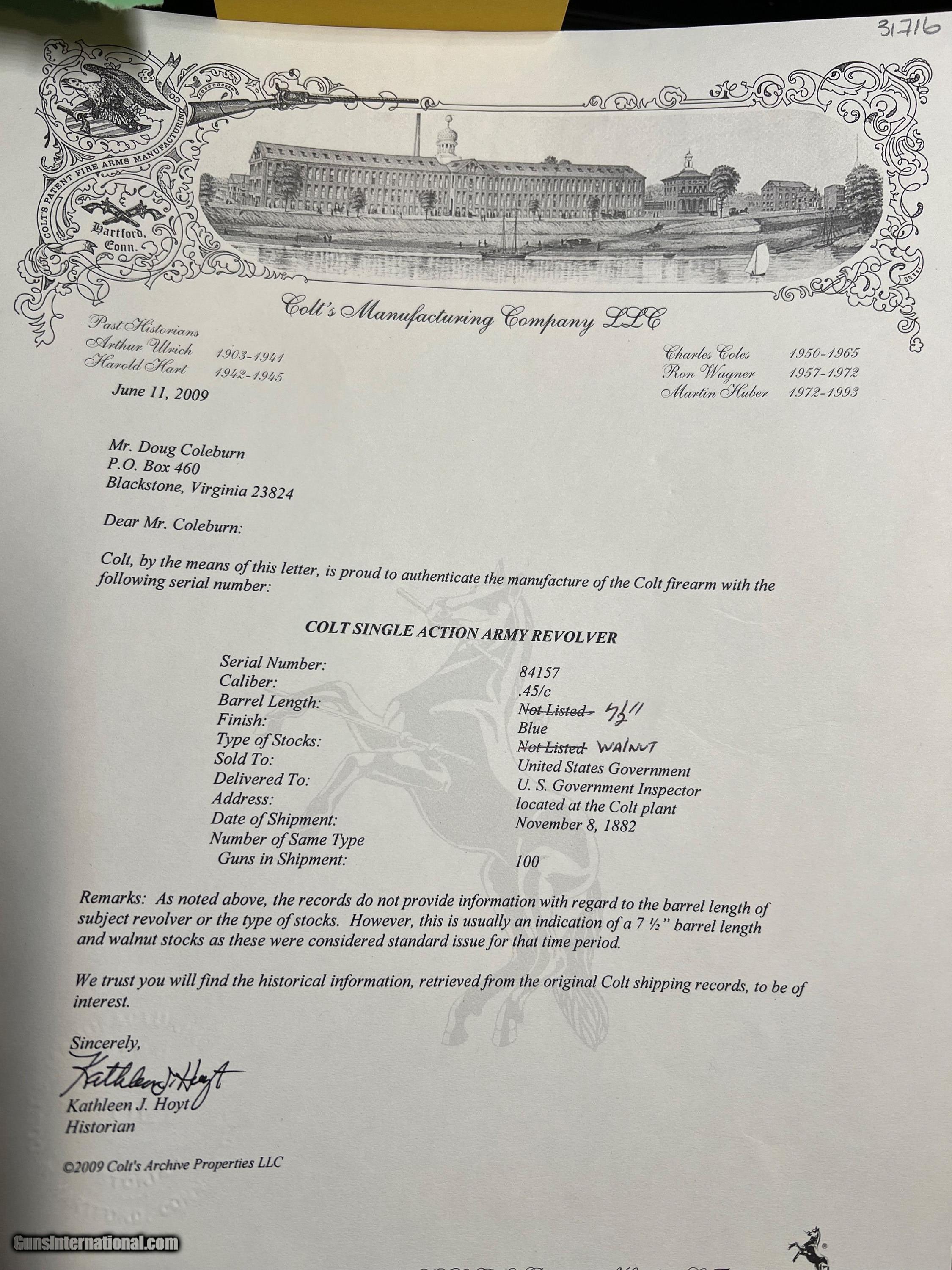 ORIGINAL APACHE WARS (1881-1886) COLT U.S. 1873 SAA CAVALRY .45 COLT CAL. SINGLE ACTION REVOLVER YEAR OF MANUFACTURE 1882.