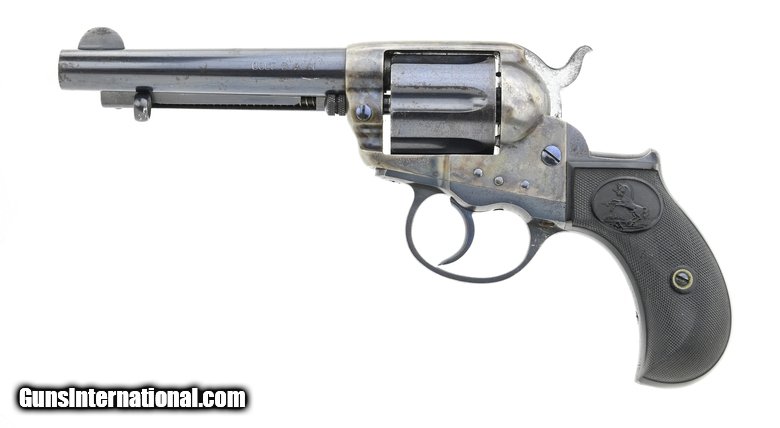 Description: " Colt 1877 Thunderer .41 Colt caliber revolver. Made in 1897. Has a 4½" in .41 Colt caliber. Absolutely beautiful gun in excellent condition. Blue rates at approximately 97% original blue. The frame has bright case colors. Grips are excellent. Very fine Colt 1877 Thunderer! SOLD Antique: Yes |