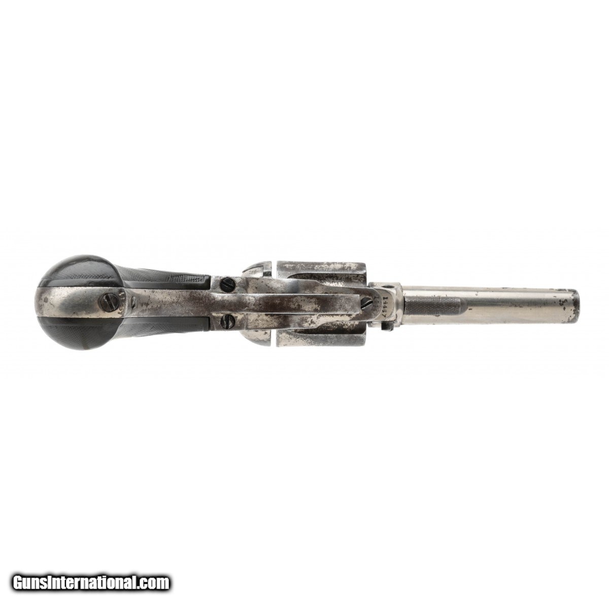 Description: "Serial number 14467. Made in 1878. 41 Colt caliber with a 3 ½" barrel. This gun is in excellent condition with 80% of the original nickel finish. Grips are very good with some carry wear. The barrel still has the original acid etched panel. SOLD Antique: Yes |
