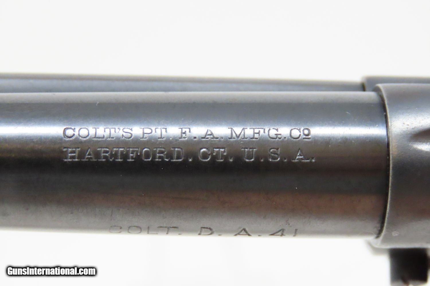 Description: 1904 COLT Model 1877 THUNDERER .41 Long Colt Double Action REVOLVER C&R Double Action Revolver Made in 1904! Here we present a Colt Model 1877 “Thunderer” Revolver, manufactured circa 1904 in Hartford, Connecticut. The Model 1877 was offered in three calibers, which lent them three unofficial names: the "Lightning", the "Thunderer", and the "Rainmaker". Neither "Lightning" nor "Thunderer" were Colt designations, nor used by the factory in any reference materials. Both terms were coined by Benjamin Kittredge, one of Colt's major distributors. Kittredge was responsible for the term "Peacemaker" for the Colt Single Action Army. The principal difference between the models was the cartridge in which they were chambered. The "Lightning" being chambered in .38 Long Colt and the "Thunderer" in .41 Long Colt. Both models had a six-round ammunition capacity. An earlier model in .32 Colt known as the "Rainmaker" was offered in 1877. The 1877 "Thunderer" in .41 caliber was the preferred weapon of Billy the Kid and was his weapon of choice when he was killed by Pat Garrett in 1881. The overall condition is good. The action functions quite well. Both grips are firmly seated and the hairline crack to the top of the right grip is stable. The numbers match. This example would be a great option for filling a spot in the collection. This firearm is classified as a Curio & Relic. Barrel is 4-1/2 inches. Caliber: .41 Colt Overall condition as seen in photos. Very Fast. Very Safe. FREE SHIPPING. Will need to be sent to your local FFL or C&R licensee. This firearm is classified as a Curio & Relic. Guaranteed AUTHENTIC & Includes CERTIFICATE OF AUTHENTICITY. ancestryguns $1565 #201359 SOLD Curio/Relic: Yes |