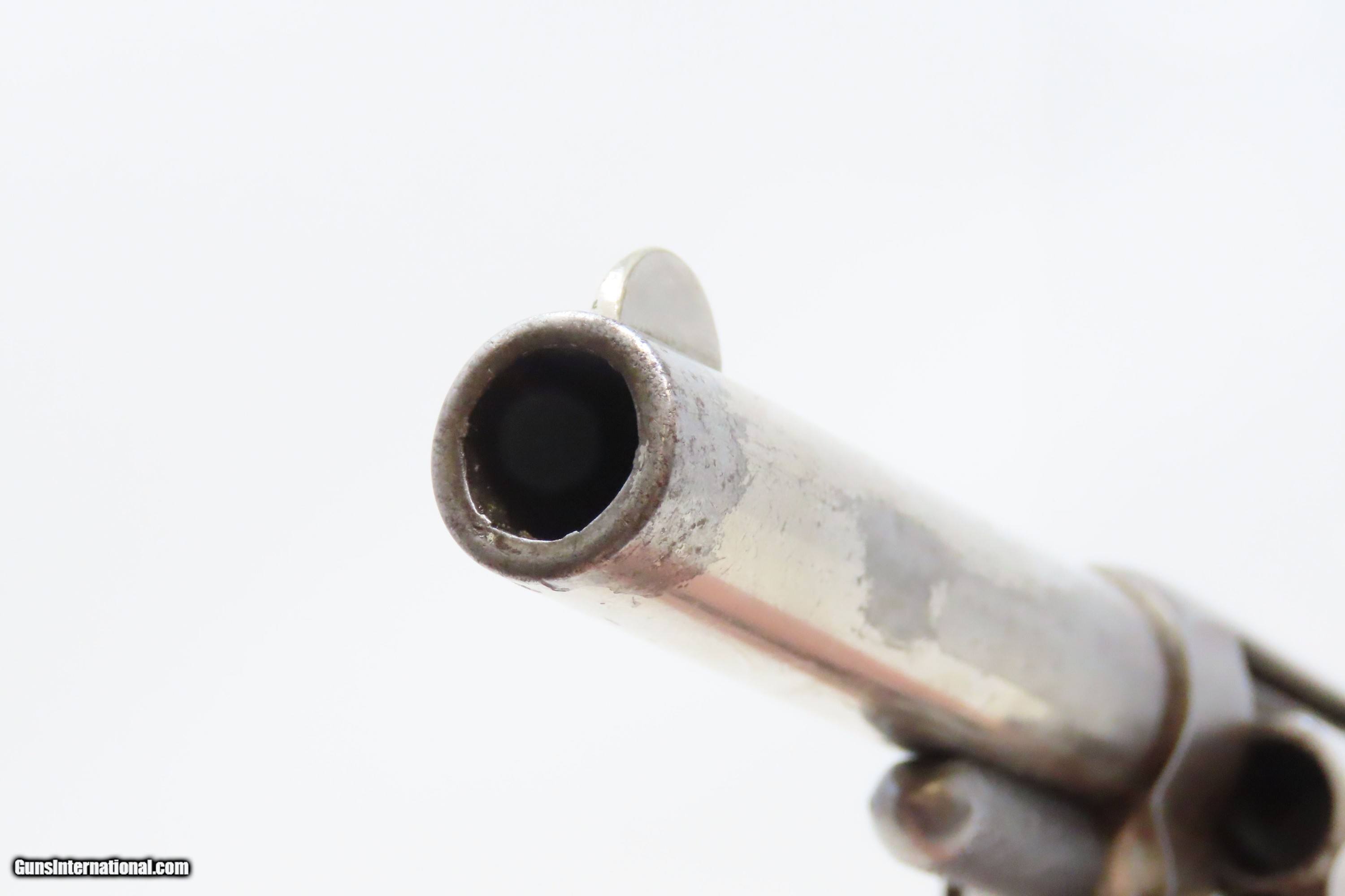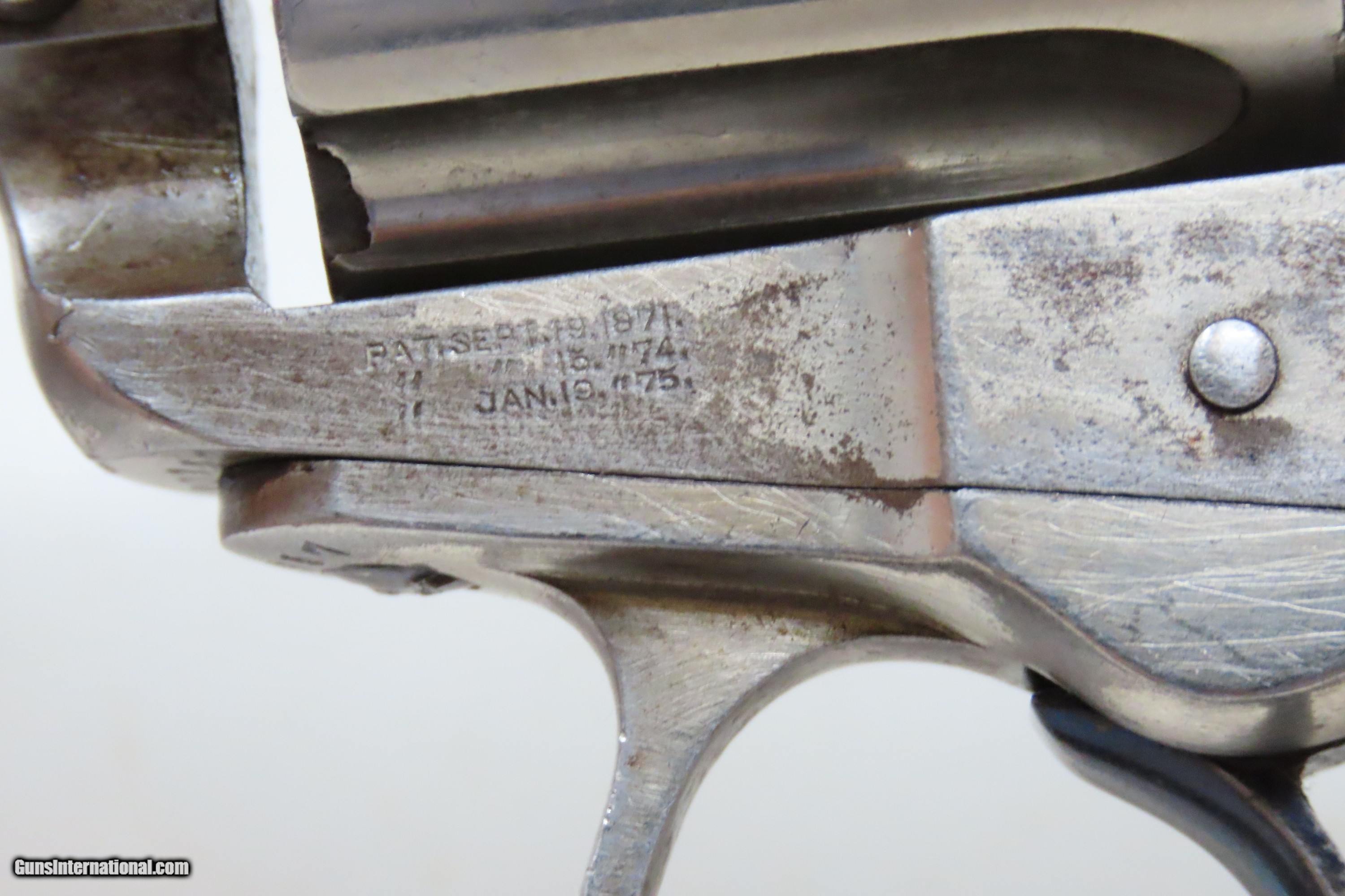 Description: Antique COLT M1877 “Etched Panel” SHERIFF’S MODEL “THUNDERER” Revolver PEARL GRIPS Double Action Colt Made in 1881 Here we present an antique Colt Model 1877 Etched Panel “Sheriff’s Model” Thunderer Double Action Revolver, made in 1881 in Hartford, Connecticut. The Model 1877 was Colt’s first venture into double action revolvers. It was quite successful, selling 166,849 from 1877 through 1909. Nonetheless, there was some hesitation to move away from the single action mechanism, which had so proven itself. Famous adopters of the Lightning were William “Billy the Kid” Bonney and John Wesley Hardin, along with “Doc” Holliday. Doc’s weapon of choice early in his western career was an 1851 Colt Navy revolver. Later, Doc carried a nickel-plated .41 caliber Colt Thunderer or the .38 caliber Colt Lightning. The Model 1877 was designed in 1876 by William Mason and was offered in three different calibers with production beginning in January 1877, which led to the three unofficial names. The first production model was the “Lightning”, in .38 Long Colt caliber. Later that year, Colt came out with the .41 Long Colt caliber called the “Thunderer”. The .32 Long Colt caliber, called the “Rainmaker”, didn’t go into production until sometime in 1887. Benjamin Kittredge, the largest Colt Distributor in Cincinnati, Ohio, coined the nicknames for these guns as a marketing tool. He was also responsible for calling the Model 1873 Single Action Army the “Peacemaker”. None of the nicknames were ever used by the factory in any reference materials. The 1877 "Thunderer” in .41 caliber was the preferred weapon of Billy the Kid and was his weapon of choice when he was killed by Pat Garret in 1881. The overall condition is very good. Original nickel finish with some blue accents. The trigger return and bolt stop spring is in need of replacement and the action needs work. The bore is in very nice condition with strong rifling. Solid mother of pearl grips are luminous. Numbers match. Own the original! This is a legitimate antique and not a reproduction. Barrel is 3-1/2 inches. Caliber: .41 Long Colt Overall condition as seen in photos. Very Fast. Very Safe. FREE SHIPPING WORLDWIDE. Delivered directly to your door by express mail! Guaranteed AUTHENTIC & Includes CERTIFICATE OF AUTHENTICITY. ancestryguns $2000 #233781 SOLD Antique: Yes |