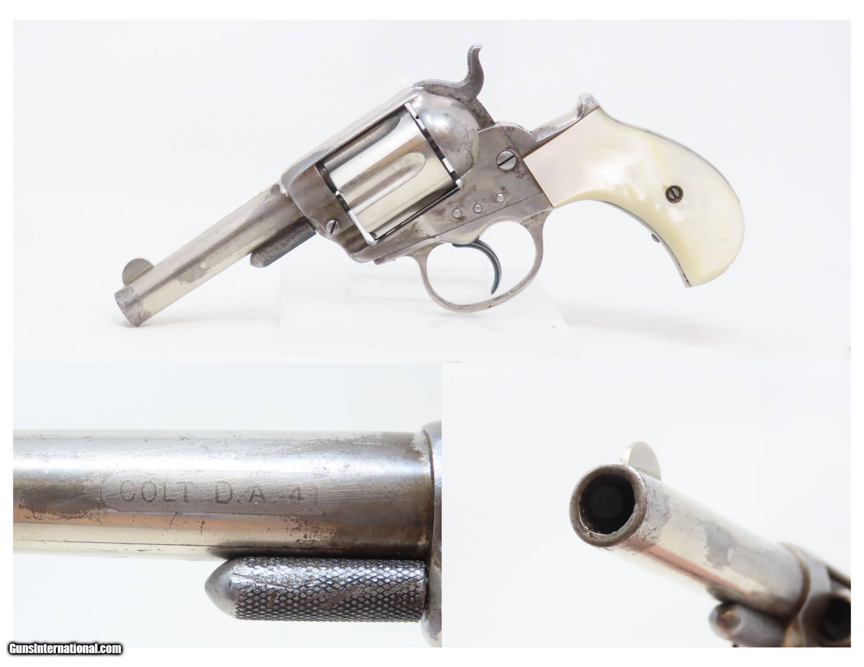 Antique COLT M1877 “Etched Panel” SHERIFF’S MODEL “THUNDERER” Revolver PEARL GRIPS Double Action Colt Made in 1881