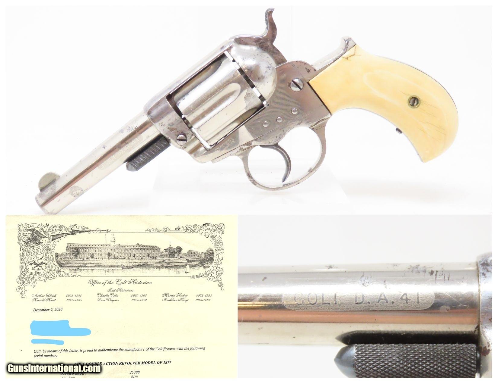 Antique LETTERED COLT Model 1877 “THUNDERER” .41 Cal. REVOLVER Doc Holliday B. KITTREDGE of CINCINNATTI, OHIO Shipped