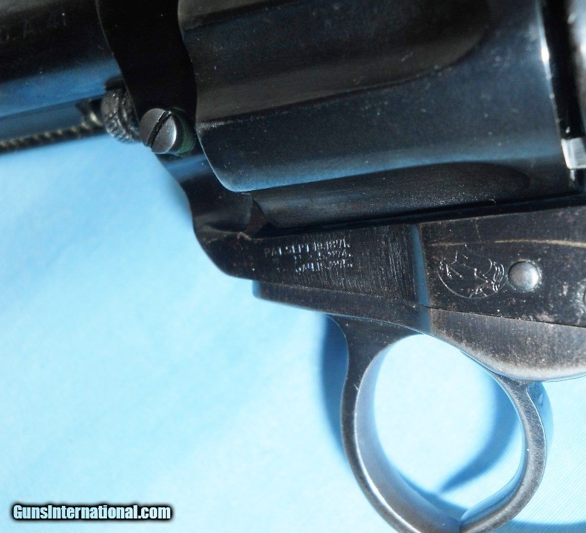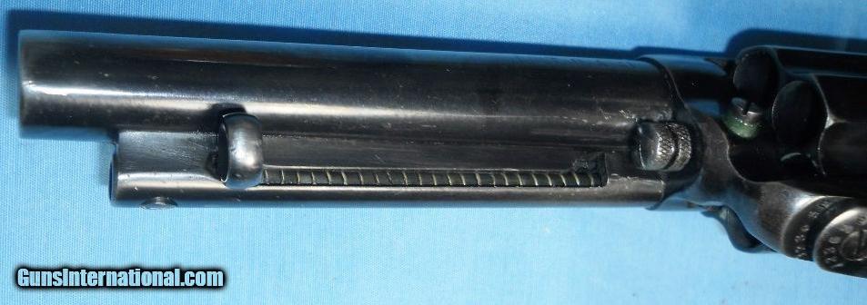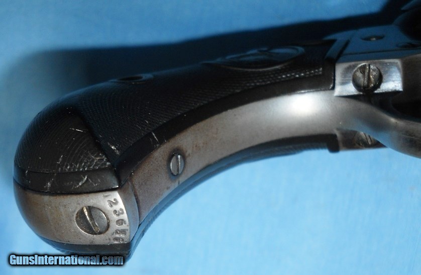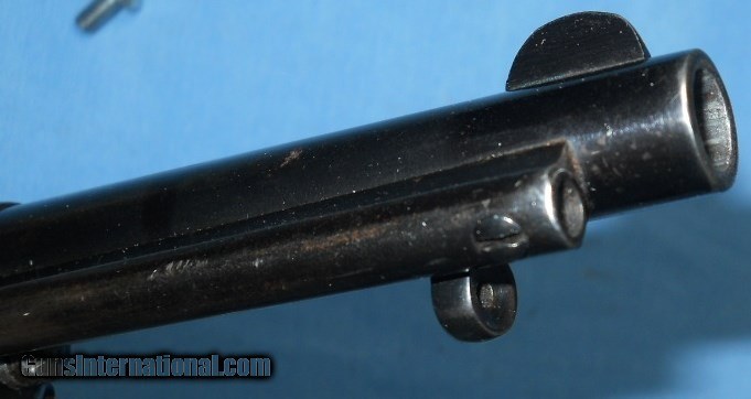 Description: 1877 MODEL COLT .41 CALIBER "THUNDERER" DOUBLE ACTION REVOLVER. MATCHING SERIAL NUMBERS, MFG. 1901. BARREL 4 1/2", VERY GOOD BORE, STRONG RIFLING WITH A FEW SCATERED SPOTS OF LIGHT PITTING. METAL RETAINS ABOUT 85% OLD BLUE FINISH WORN TO GRAY PATINA ALONG THE GRIP STRAPS. FACTORY MARKING ARE ALL LEGIBLE. CHECKERED FACTORY GRIPS IN VERY GOOD CONDITION HAVING PROPER WEAR AND A FEW SMALL DINGS. ACTION FUNCTIONS GOOD BOTH SINGLE & DOUBLE ACTION. A GOOD LOOKING, VERY FAIRLY PRICED "THUNDERER" FOR COWBOY ACTION or YOUR COLLECTION, AS PICTURED. ANYONE CAN BUY BUT MUST SHIP TO LICENSED C&R COLLECTOR or FFL DEALER WHERE OK ! S&H $25.00 INCLUDES $500.00 INSURANCE. S&H $25.00 INSURED SOLD Curio/Relic: Yes Manufacturer: COLT Model: 1877 Serial Number: 123636 Caliber Info: .41 LONG COLT |