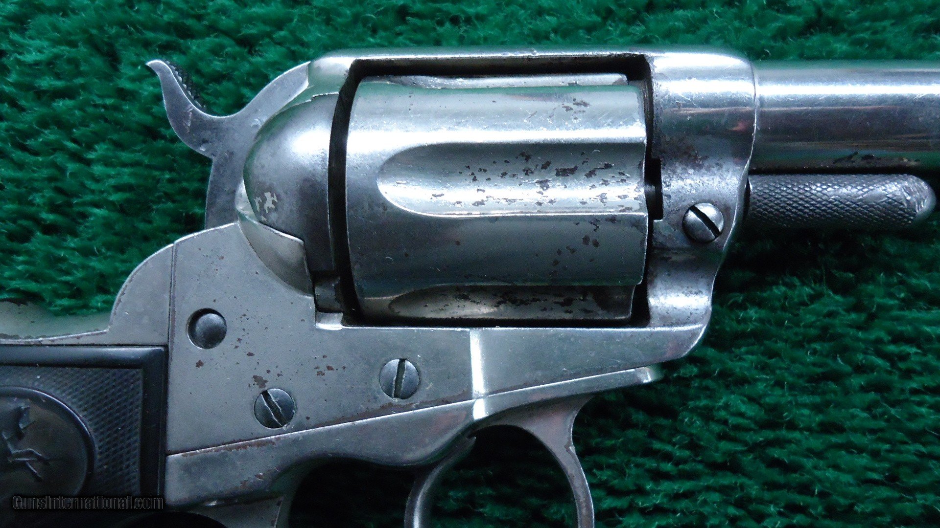 Description: Caliber 41. Scarce 2-1/2 inch barrel. All matching numbers. Metal retains about 80-85% original nickel with some wear at the muzzle. Some frekling on the cylinder flutes. Blue hammer and lever. Hard rubber grips with the Rampant Colt insignia show some honest wear. This was one of 5 guns in a shipment in the rare 41 caliber. Comes complete with a Colt Factory Letter. Leroy Merz Antique Firearms specializes in antique and vintage Winchesters and other fine American firearms. Since 1965 Mr. Merz has taken part in the world of firearms and has been a contributor to many well known reference books. We have hundreds of additional guns in every price range at our home online. Search for Merz Antiques in google. SOLD Antique: Yes |