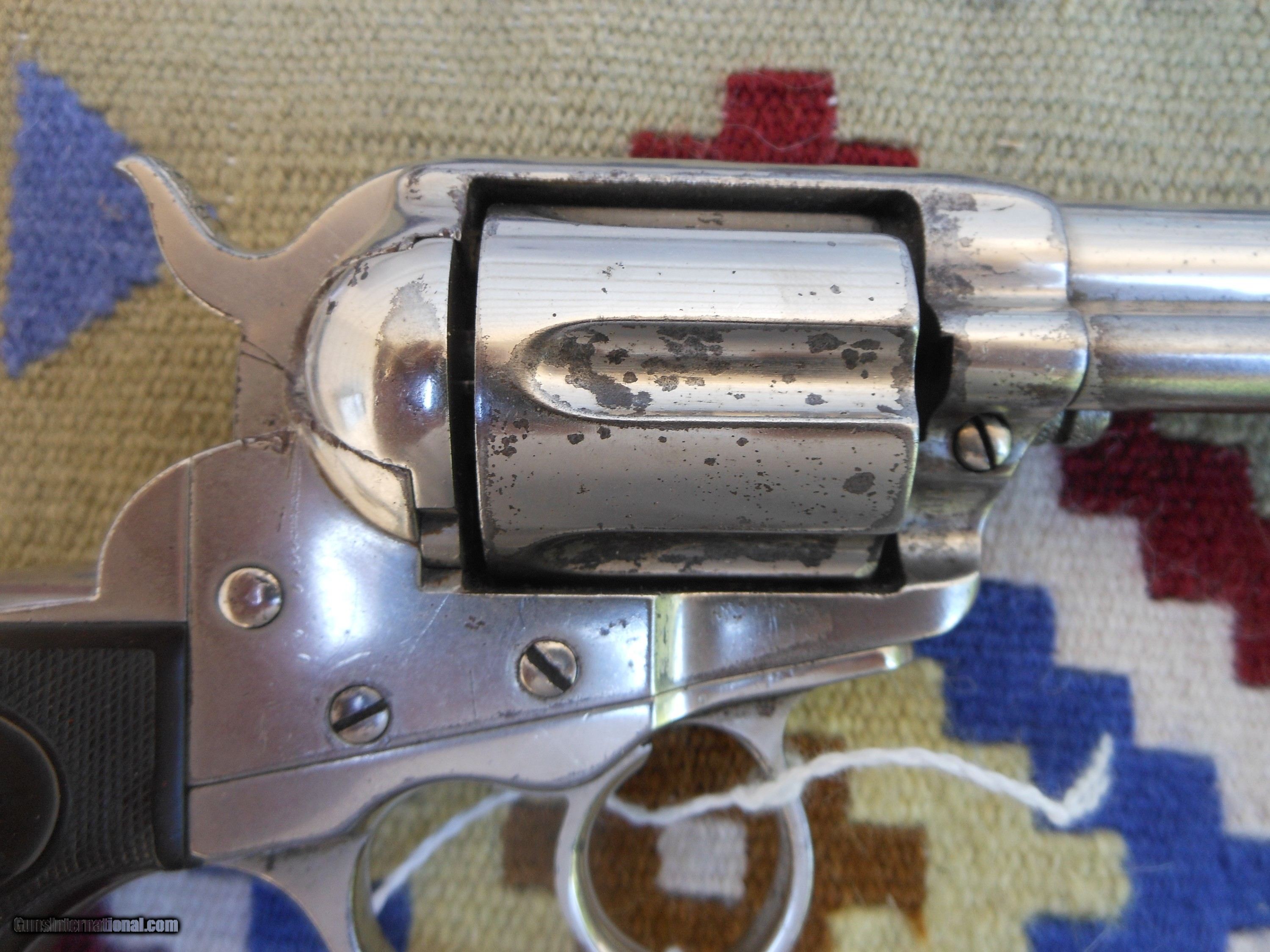 Description: Colt Thunderer made in 1882. It is nickle with hard rubber grips. Four inch barrel with ejector housing. Action is tight and flawless. buyer pays insurance and I'll pay shipping. SOLD Antique: Yes |