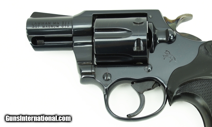 Colt Lawman MKIII .357 Magnum caliber revolver. Rare 2” snubnose model with blue finish and factory Pachmayr grips. 1970’s vintage, in excellent condition.