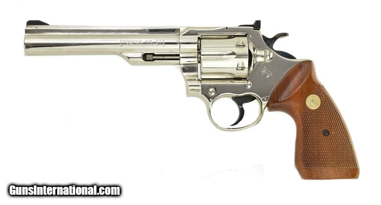 Description: Colt Trooper MKIII .357 Magnum caliber revolver. Scarce 6” nickel model. Near excellent condition with very light wear. Made in 1981.