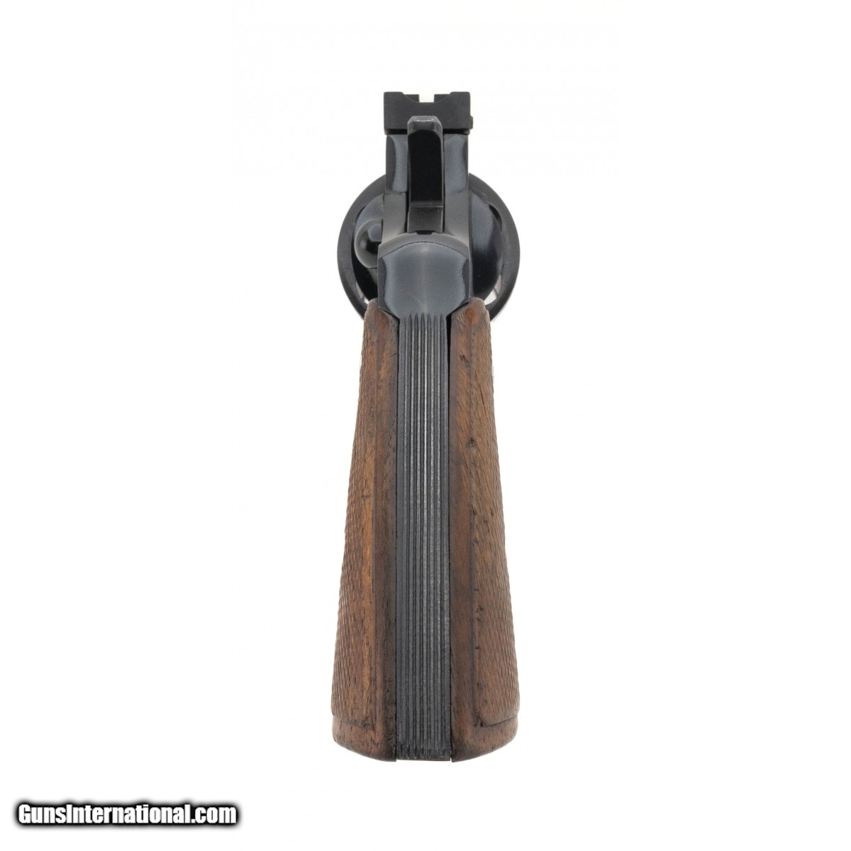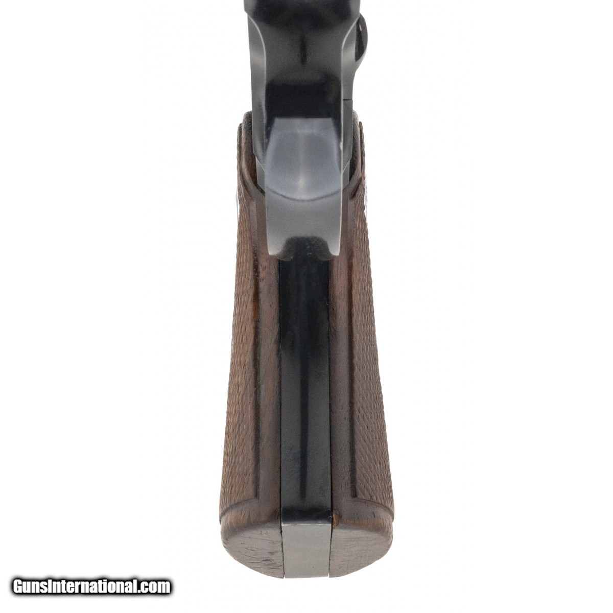 Description: " SN: 57703. 6"" blue revolver made in 1966. Bore and action are excellent. The blue finish is excellent condition with a bit of muzzle wear. The grips show some wear. Overall near excellent condition. SOLD |