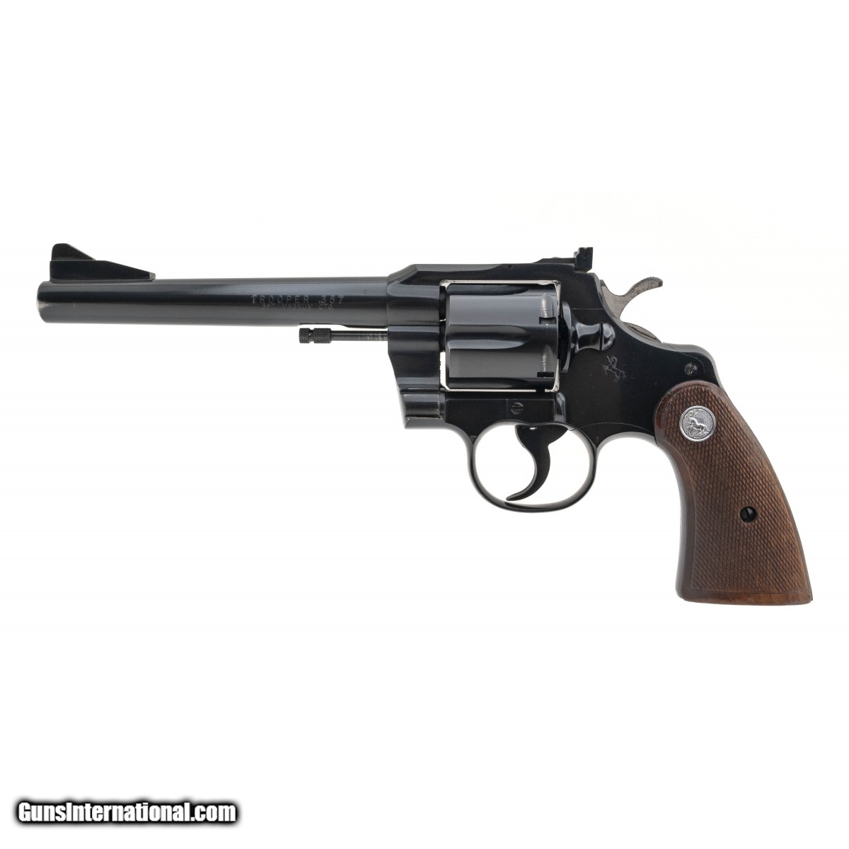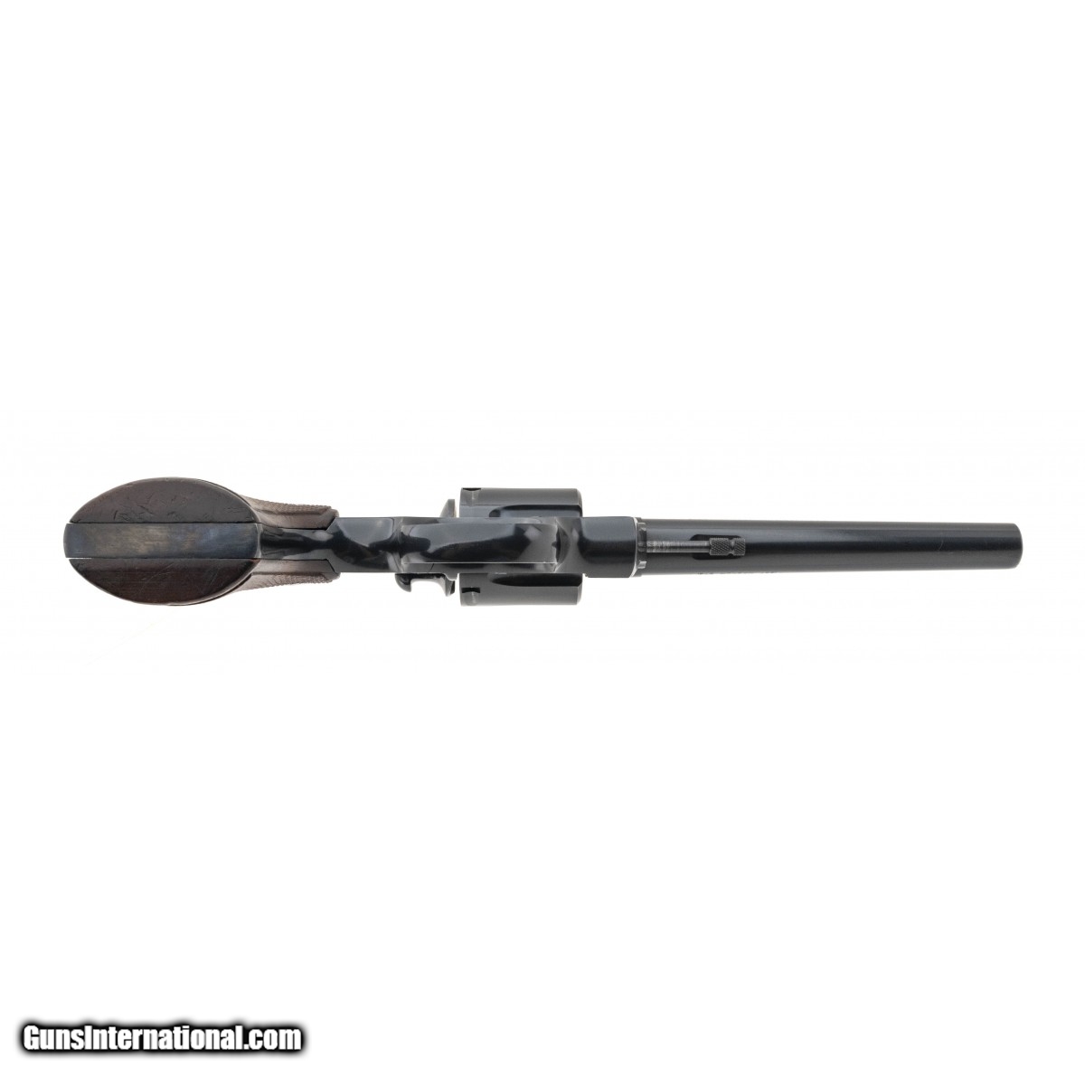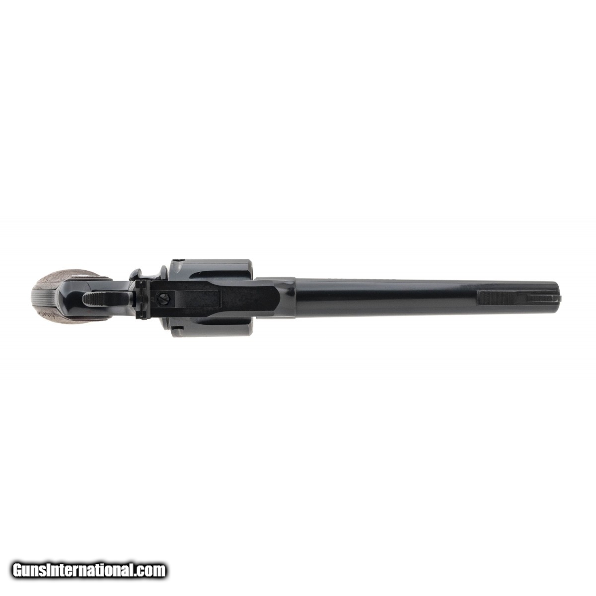 SN: 57703. 6"" blue revolver made in 1966. Bore and action are excellent. The blue finish is excellent condition with a bit of muzzle wear. The grips show some wear. Overall near excellent condition.