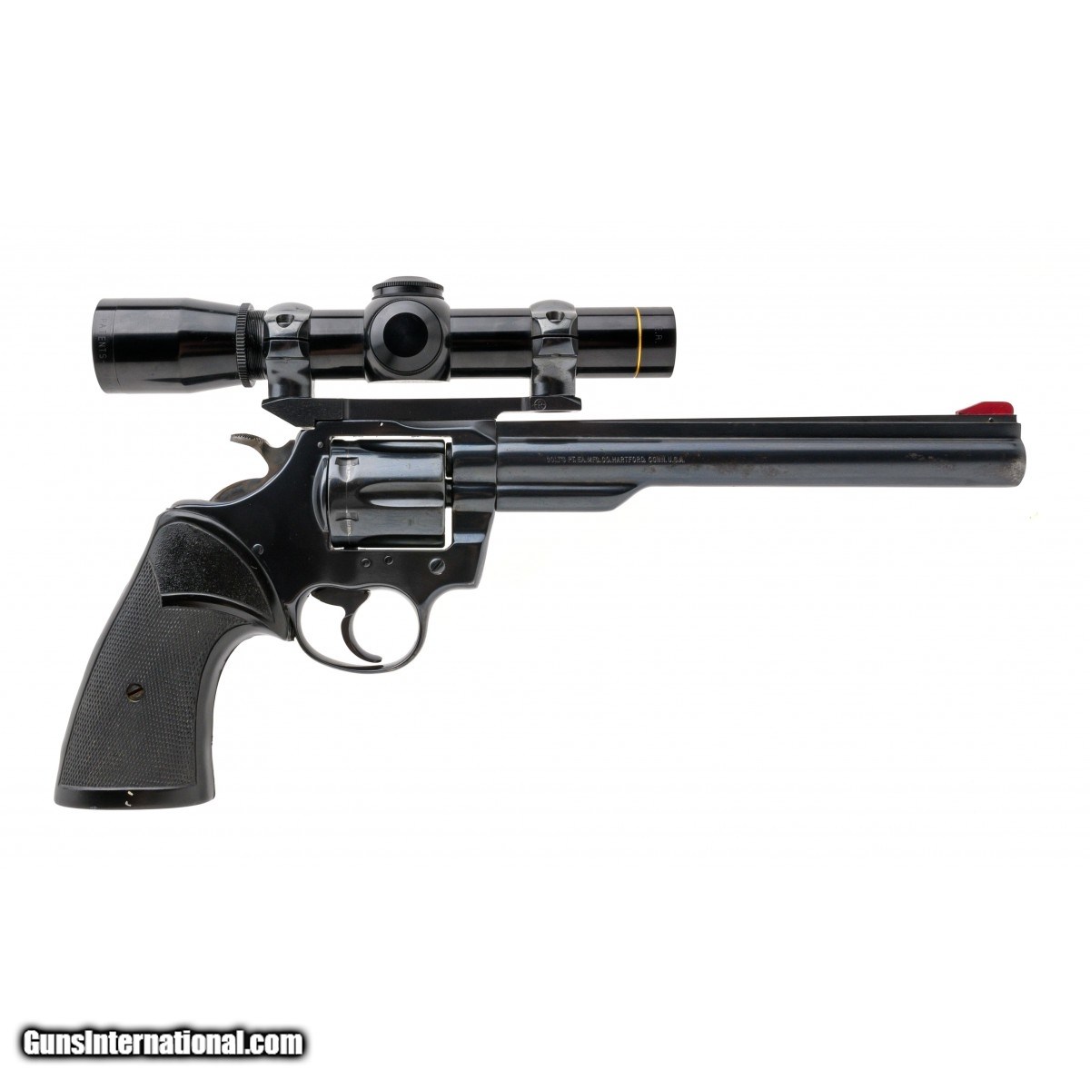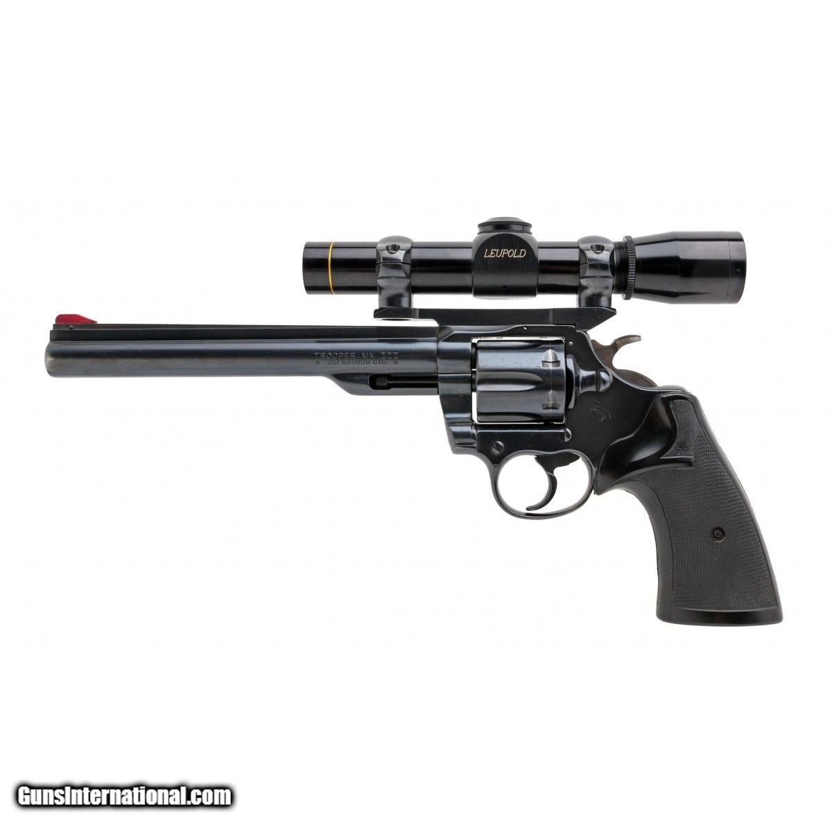 SN: 70096L. Made in 1980. .357 Magnum with a 8"" barrel. Bore is bright with strong rifling. Double action revolver with a Leupold 2X scope. Finish is in good condition with light thinning noted near the muzzle. Pachmayr grips show light handling wear with strong checkering. Overall good condition.