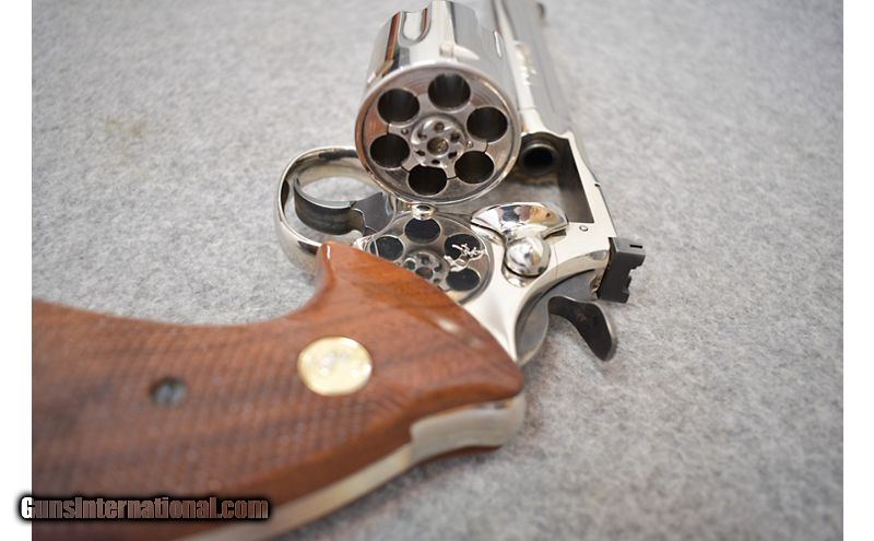 Description: Colt Mk III Trooper in .357 Magnum dates to 1978. Handgun is nickle coated from factory. Wear marks on wood and steel. Action is smooth and crisp with cylinder rotating without issue. Sights are good with adjustability for windage and elevation. .357 Mag SOLD Metal Condition: Good; Minor scratches Wood Condition: Good; Scratches and dents Bore Condition: Very Good Barrels: 6 Weight: 2.5 lbs. Sights: Front post with adjustable rear notch Item Location: Billings, MT |