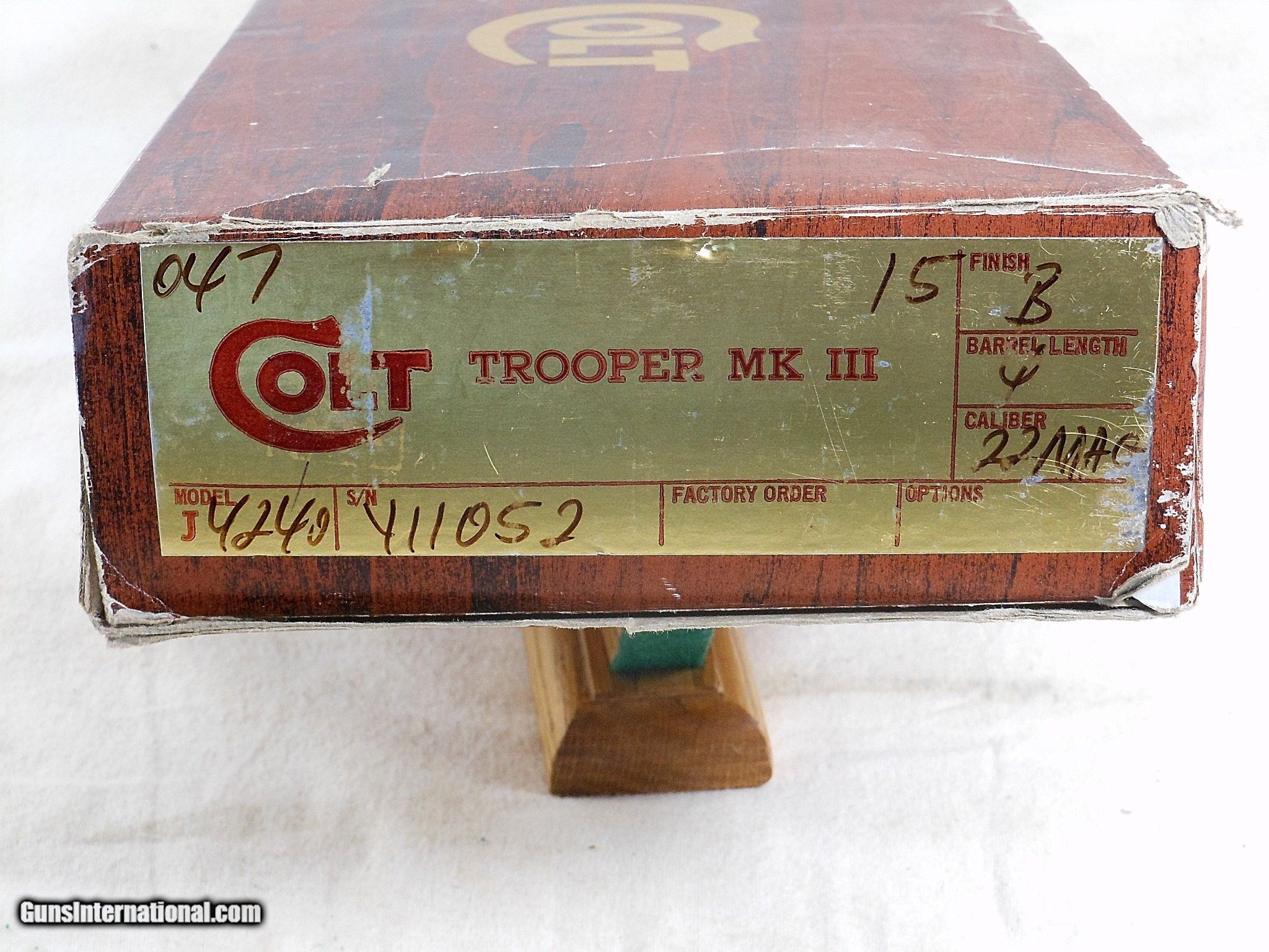 Colt Model Trooper Mark III In Rare 22 Winchester Magnum New In Original Box