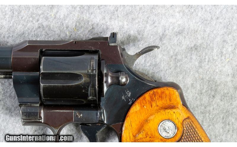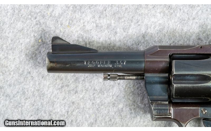 Description: 1968 Colt Trooper chambered in .357 Magnum. Bluing has some minor holster wear but is overall excellent. Bore is excellent. .357 Magnum SOLD Metal Condition: "Excellent, Holster Wear Wood Condition: Very Good Bore Condition: Excellent Barrels: 4" Barrel Triggers: Double Action Butt Pad: Factory Colt Grips with Gold Medallions Sights: "Fixed Front Blade, Adjustable Rear Item Location: short pump |