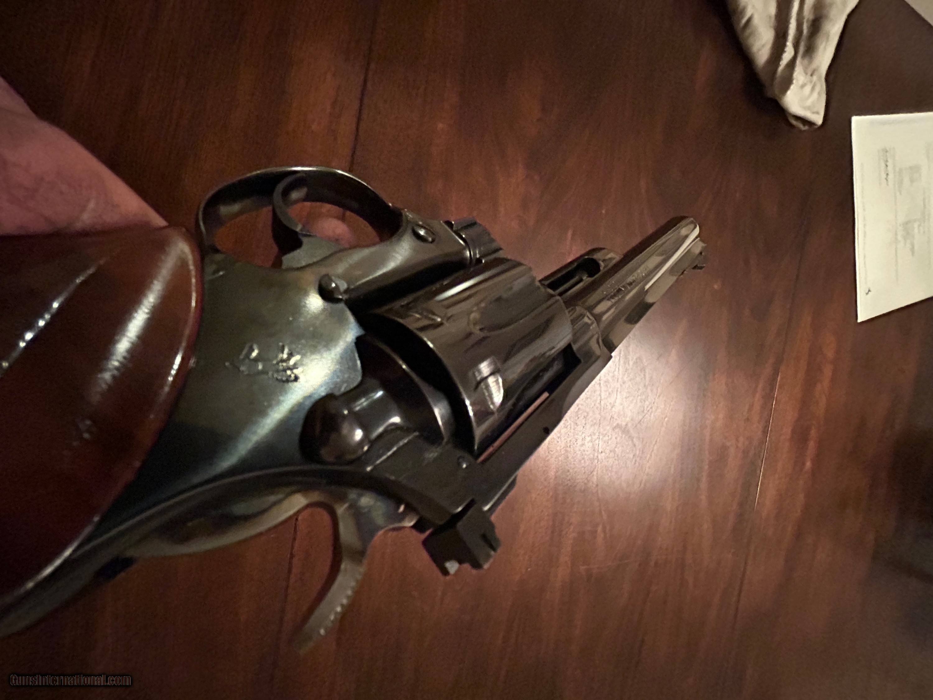 Description: I have for sale a 1977 Colt Trooper III along with a factory letter stating such. The barrel is 6" and it has target sight, hammer and trigger. This gun is in Exc condition overall with a slight turn ring on the cylinder and a scratch just above the cylinder release. Beautiful color case hardening on the hammer and the grips are immaculate. This gun has been well cared for. No box unfortunately. I'm asking $900 shipped to your FFL. Call with questions. Randy Hanna 936-636-3548. Thanks for your interest! SOLD Handgun Caliber: .357 Magnum Manufacturer: Colt Model: Trooper III Serial Number: L53736 Barrel Length: 6” Condition: Excellent + Manufacture Date: 1977 |