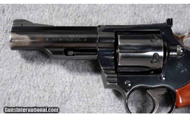 Description: SOLD Caliber Info: .357 Magnum Metal Condition: Holster wear and pitting at muzzle. Minor handling marks. Wood Condition: Shows contact and handling marks. Bore Condition: Bright and clean with strong rifling. Barrels: 4 Triggers: DA/SA Stock: Hardwood grips. Weight: 39 Oz. Sights: Fully adjustable notched rear sight. Ramped front blade. Item Location: Billings, MT |