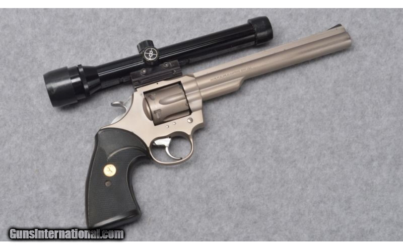 Description: This is a shooter grade Trooper. SOLD Manufacturer: S/N - Y422XX Caliber Info: .22 WMR Metal Condition: Good Bore Condition: Good Barrels: 8 Triggers: Factory Stock: Black Rubber w/Colt Medallions Weight: 61 oz w/ scope Sights: Bushnell Scope 2.5X Item Location: West Chester, OH |
