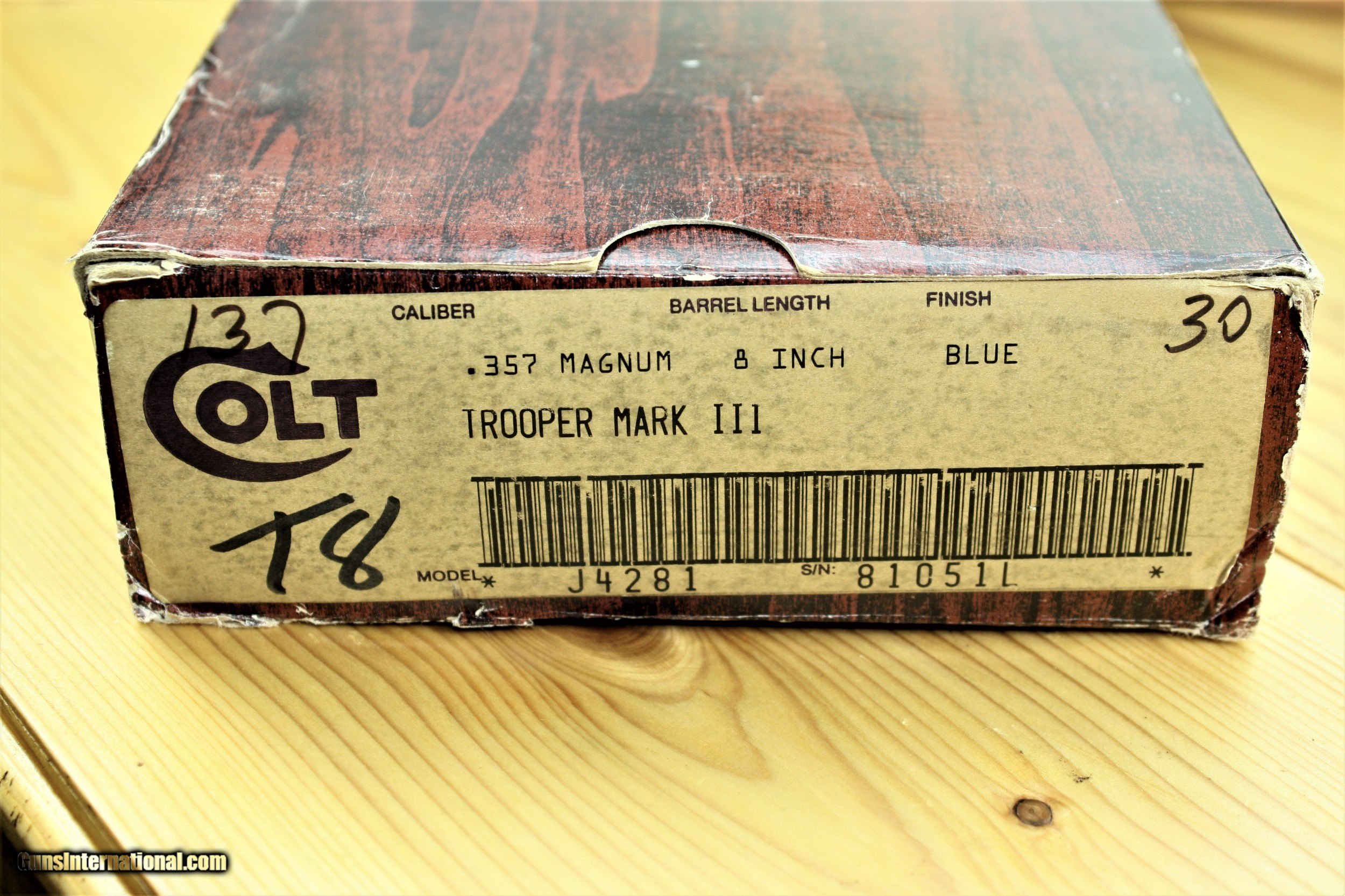 Colt Trooper Mark III, .357 Magnum, 8 inch, blue, box, papers, exc