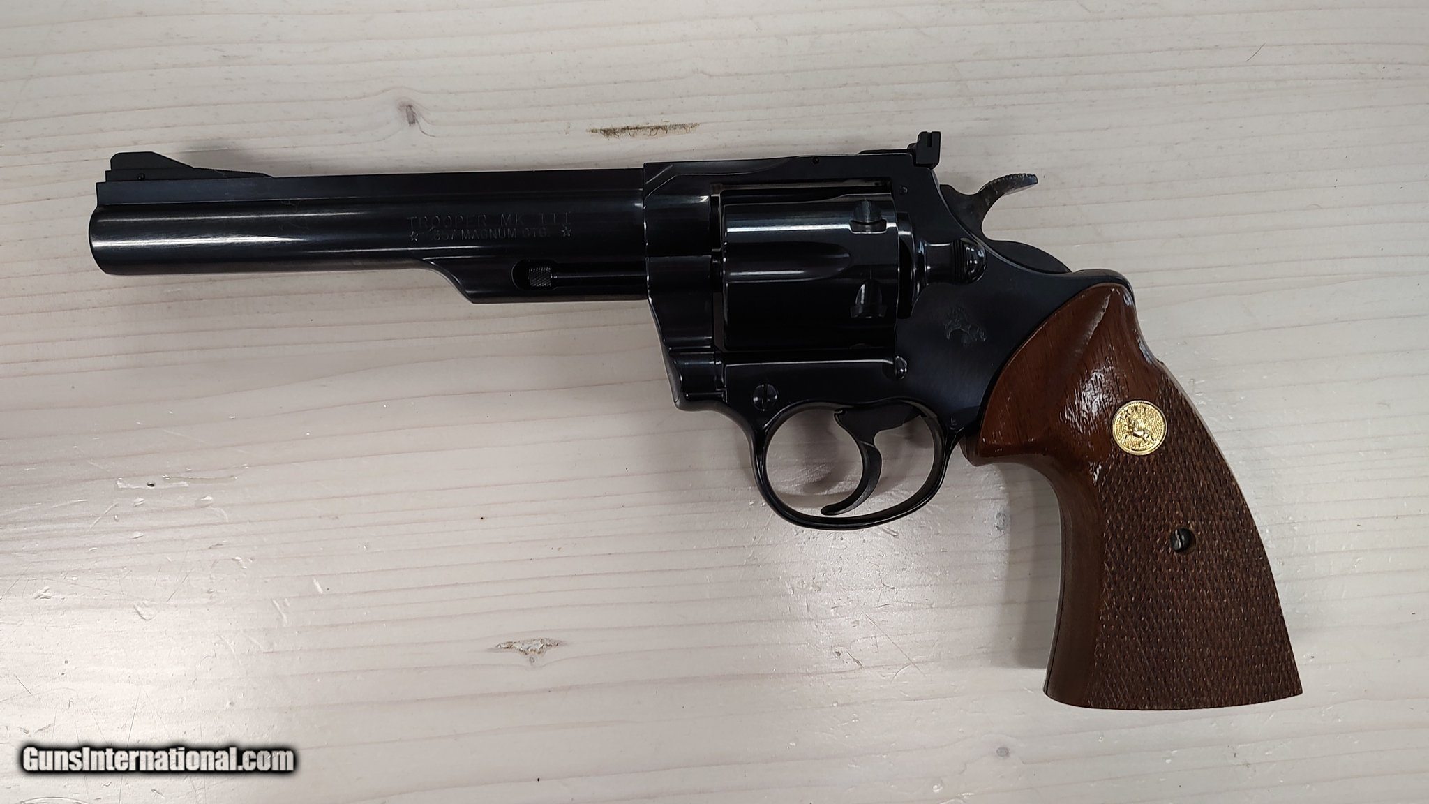 Description: Guns Listing ID: 1379793 Colt began to be concerned with a decline in its market share because of price increases brought about by the high labor costs inherent in its manufacturing processes. In response, an entirely new product line of revolvers dubbed the MK III series debuted in 1969. Intended to be the first major advancement of Colt‚‚s designs since the beginning of the 20th century, the MK IIIs used a new ‘J’ frame and had no parts interchangeability with older models. The new revolvers employed transfer-bar lockwork system, so that the revolver could fire only if the trigger was deliberately pulled completely to the rear. The springs used in the Mark III internals were also an improvement. Unlike the older flat style, they were coiled and made entirely of corrosion-resistant stainless steel. The .357 Magnum Trooper was the premier offering of the new product line, featuring a heavy barrel with a solid top rib as well as a shroud which protected the ejection rod. The MK III series incorporated a number of models, several of which were updates of existing designs. The MK III series was discontinued in 198 SOLD Manufacturer: COLT Model: TROOPER MK III Caliber Info: .357 MAG Condition: Used - Non-Certified Barrels: 6 BARREL Finish: BLUE |