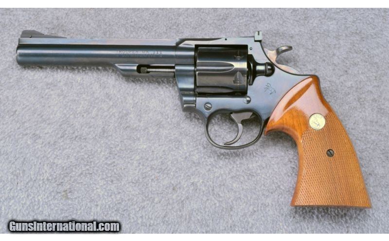 Description: Blue shows a bit of edgewear and cylinder has a turn ring. Bore and grips remain excellent. Complete with foam box insert. SOLD Manufacturer: S/N 96XXJ Caliber Info: .357 Magnum Metal Condition: Very Good Wood Condition: Very Good Bore Condition: Excellent Barrels: 6 Triggers: Original Smooth Stock: Checkered Walnut Grips with Colt Medallions Weight: 45 OZ Sights: Serrated Ramp Front - Adjustable Notch Rear Item Location: Wheeling, WV |