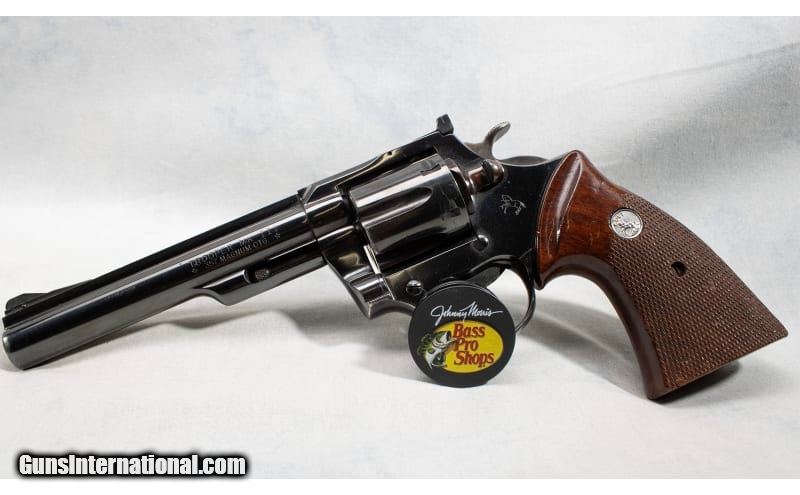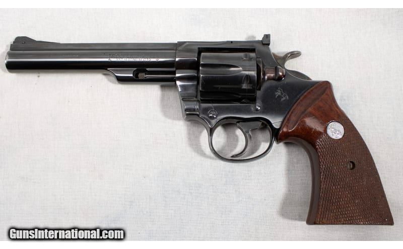 Description: The Colt Trooper is a medium frame, double-action revolver featuring a six-round cylinder that was designed as a less expensive alternative to the upscale Colt .357 and the later Colt Python and Colt King Cobra. In the late 1960s, Colt began to be concerned with a decline in its market share because of price increases brought about by the high labor costs inherent in its manufacturing processes. In response, an entirely new product line of revolvers dubbed the MK III series debuted in 1969. This firearm was manufactured in 1971. All WV firearm sales are subject to no sales tax. .357 Magnum SOLD Metal Condition: Very Good Wood Condition: Excellent Bore Condition: Very Good Barrels: 6 Inches Weight: 2lbs 10oz Item Location: Morgantown, WV |