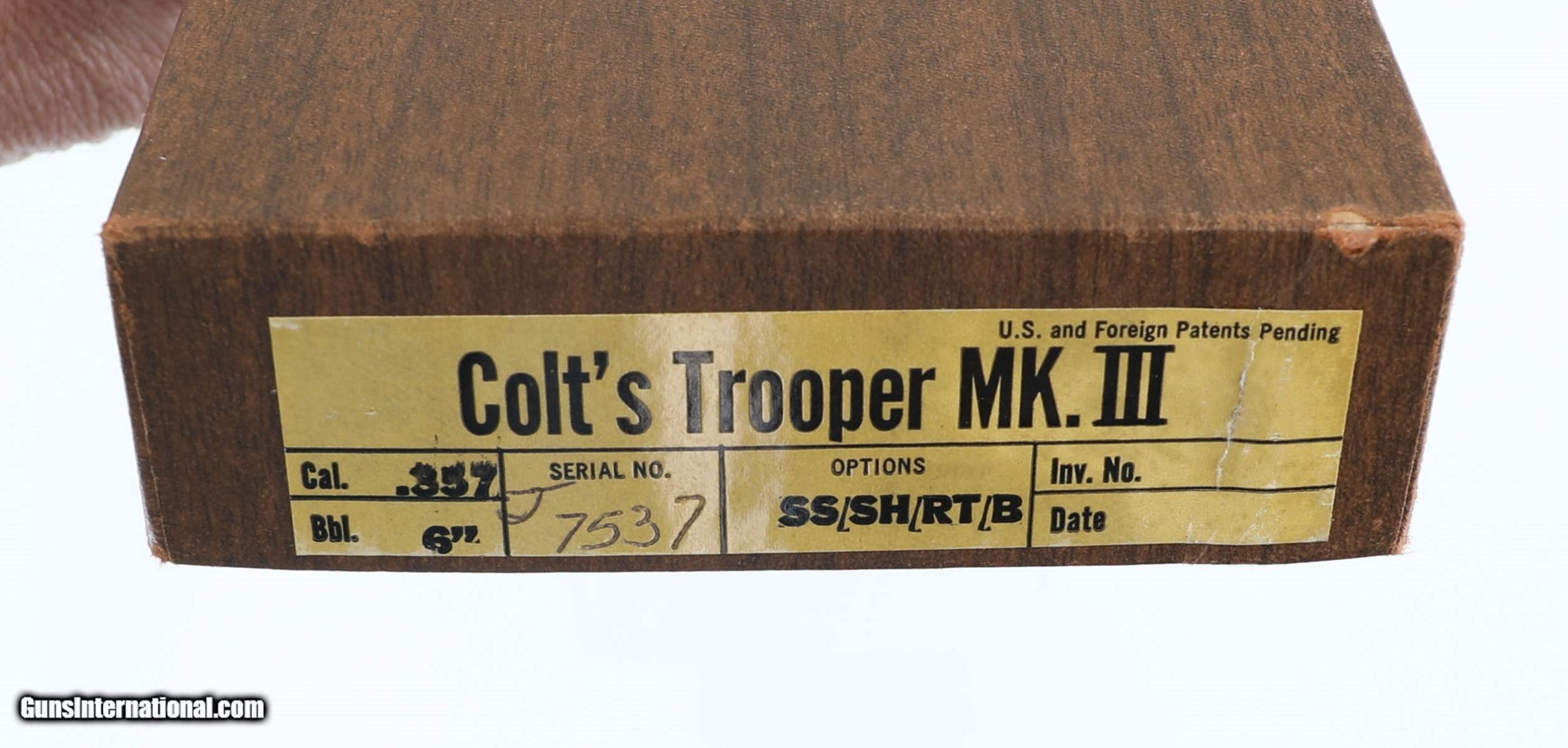 SOLD Manufacturer: COLT Model: TROOPER MKIII Serial Number: J75XX Barrel Length: 6 Caliber Info: 357 MAG Condition: EXCELLENT |