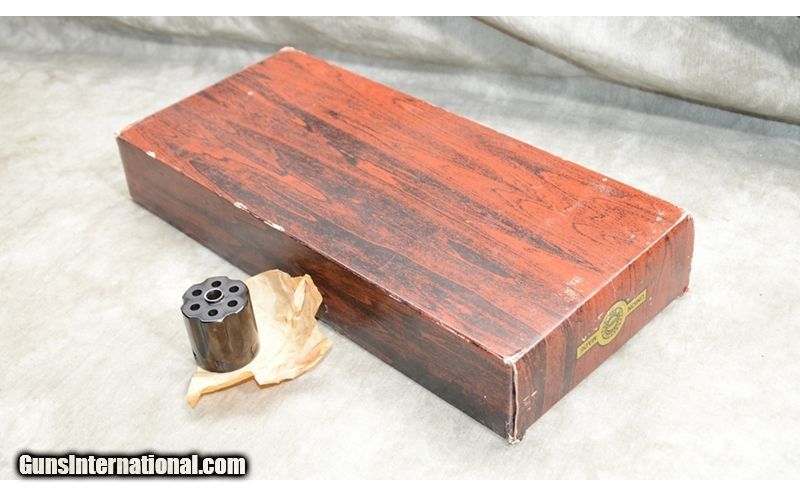 Description: Rare find from 1980. This revolver appears to be fired only lightly from the WMR cylinder. The Long Rifle cylinder appears new. .22 Long Rifle/.22 Mag SOLD Chambers: 6 Metal Condition: Excellent. It could almost pass for new. Wood Condition: Excellent. It could almost pass for new. Bore Condition: Shiny and bright. Barrels: 6-inch Triggers: Factory double and single action trigger. Butt Pad: Checkered walnut. Weight: 47 oz. Sights: Serrated ramp and adjustable notch. Item Location: Rogers |