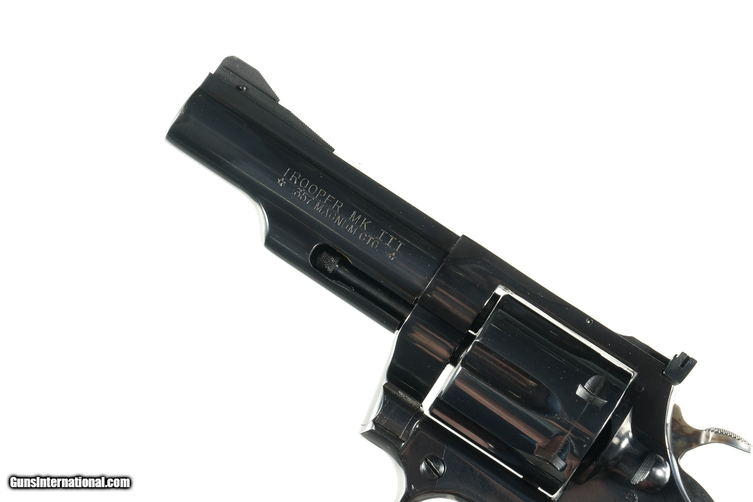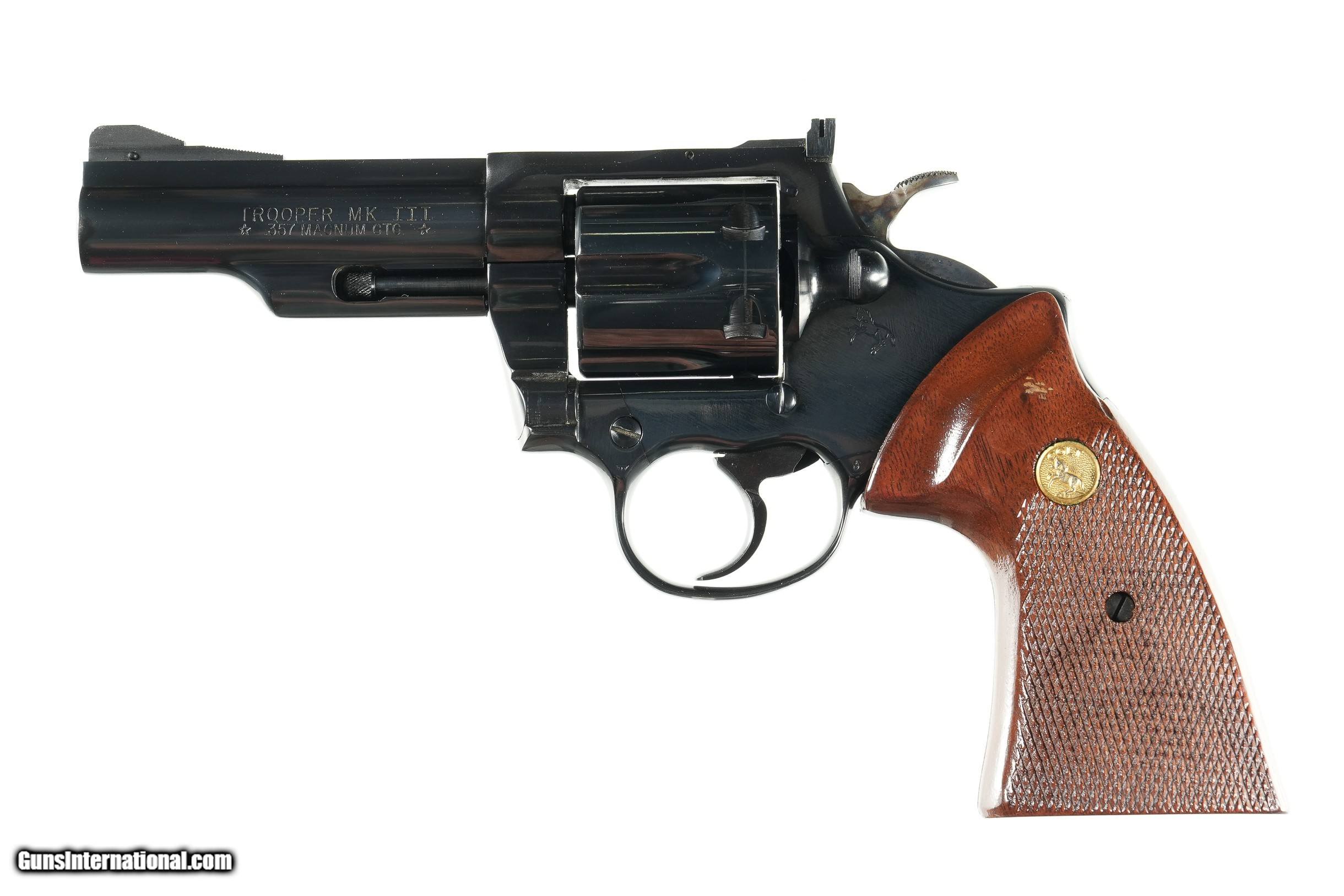 Description: Colt Trooper MKIII .357 Mag with 4" Bbl, blue finish. adjustable sights with factory checkered target grips with Rampant Colt Medallions. J-Frame square butt. Excellent overall with cylinder turn line. bright bore and 98% blue. Mfg 1976. • Free Shipping, No Credit Card Fees. • Lay-a-way available for this firearm. • 1/3 Down, a 1/3 in 30 Days 1/3 in 60 Days. SOLD Handgun Caliber: .357 Magnum Manufacturer: Colt Model: Trooper MK III Serial Number: L15579 Barrel Length: 4 |
