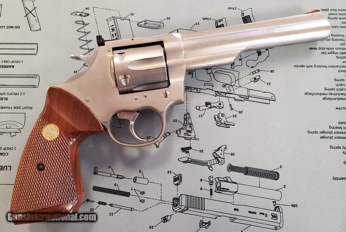 Description: Guns Listing ID: 903737 No box. Original wood grips with medallion. Slight cylinder ring. SOLD Manufacturer: COLT Model: TROOPER MK III Caliber Info: .22 LR Condition: Used - Non-Certified Barrels: 6 BARREL Finish: NICKEL MATTE |