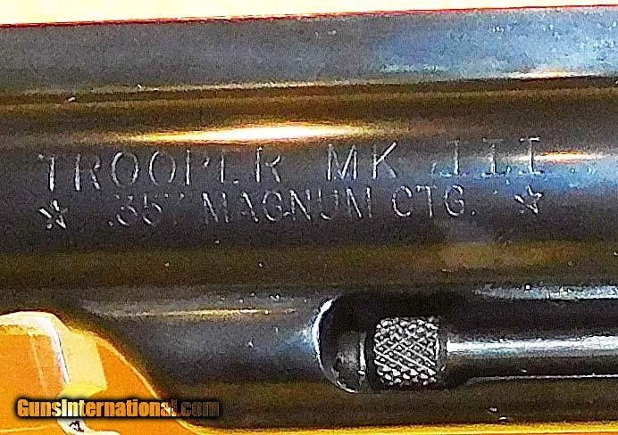 Description: COLT TROOPER MKIII IN .357 MAGNUM CAL., WITH 6" BARREL. COLOR BLUE. CONDITION 97%. SERIAL NUMBER 3297J. COLT MODEL TROOPER MKIII IN .357 MAGNUM CALIBER, MIRROR BORE, WALNUT GRIPS EXCELLENT, SLIGHT CYLINDER TURN, 97% OVERALL CONDITION, OUR STOCK # D3301 SOLD |