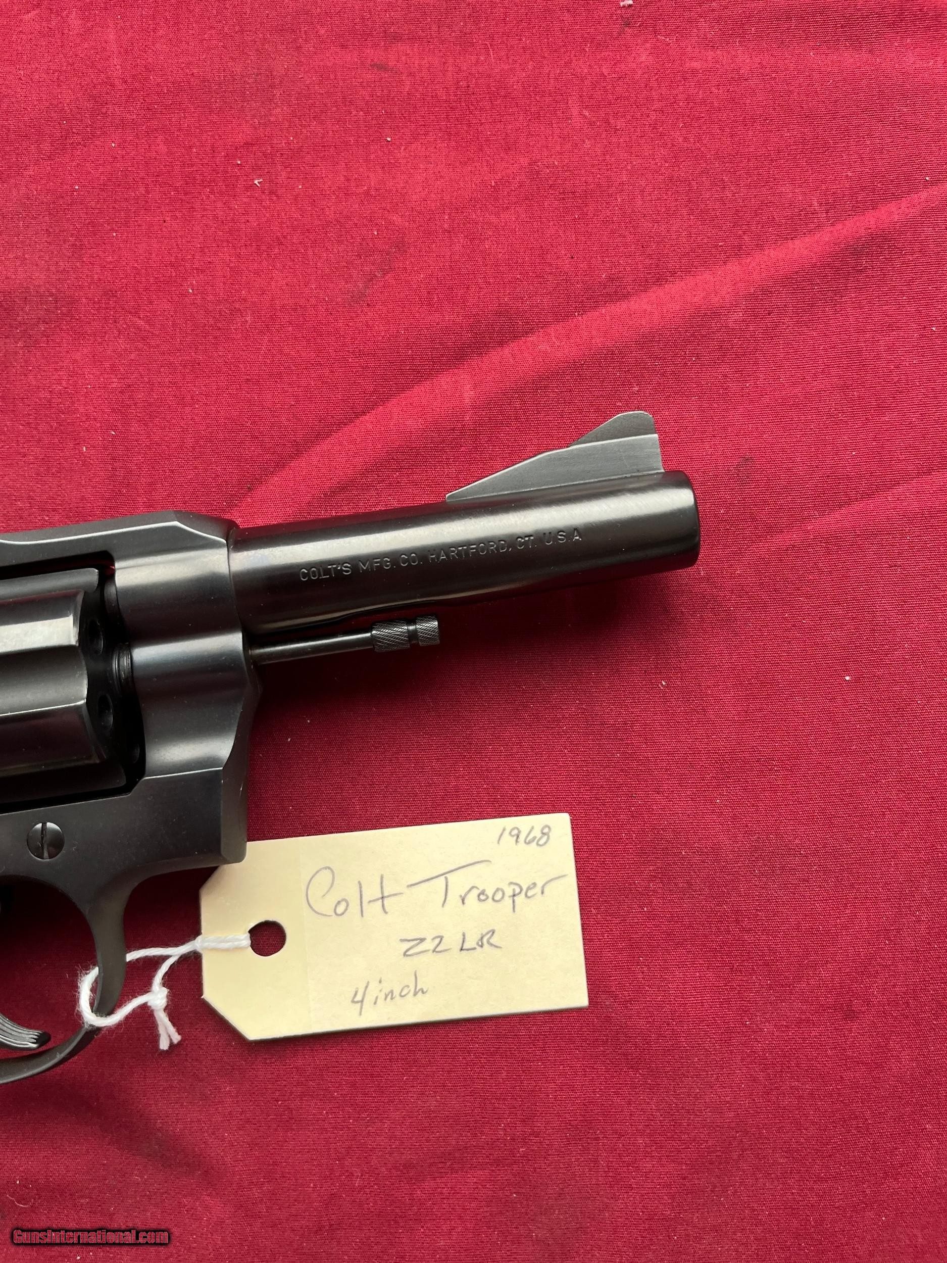 Description: VERY NICE CONDITION . COLT TROOPER 22 LONG RIFLE, 4 " BARREL WITH ADLUSTABLE SIGHTS, SER# 69724 MADE IN 1968. IF FIRED IT WAS VERY VERY LITTLE . EXCELLENT ORIGINAL BLUE FINISH. EXCELLENT GRIPS. EASTERN BRANCH FIREARMS ADD 35.00 SHIPPING – HANDGUN USPS PRIORTY MAIL ADD 35.00 SHIPPING – LONG GUNS GROUND SHIPPING Questions e-mail or call Glen at Eastern Branch Firearms 207-215-5021 TERMS – PLEASE READ BEFORE I DO NOT HAVE A LAYAWAY OPTION ( WE ACCEPT CREDIT CARDS ) -- I GET ALOT OF REQUEST FOR TRADES, I WOULD PERFER NOT TO DO TRADES ON MY INTERNET LISTINGS PAYMENT OPTIONS- We accept money orders, cashier’s checks , bank checks. sorry no personal checks. We accept all major credit cards please add 3% to the ’s cash discount price.(Maine Residents to pay 5% sales tax) .Handguns and long guns do need to be shipped separate. PLEASE do not send payment via FED EX . USPS & UPS are fine. Thank you. We include a signed copy of our FFL with each firearm shipped. SAFTY NOTICE- Buyer is solely responsible for determining that a used gun is safe to shoot. The firearms offered have not been test fired but have been given a visual inspection only for purposes. It is a requirement that every used firearm is inspected by a qualified gunsmith before firing. By , the buyer agrees to hold seller harmless against damages, injury, or death caused by defective merchandise. RETURN POLICY- All firearms come with a 3-day non firing , non messing with ( turning srews ,taking apart,removing parts, scoping. firing, cleaning or messing with in anyway) inspection/return privilege.Inspection is based on a visual review of the gun to confirm the gun is in the condition stated. In the case of a return, buyer pays all shipping charges & if paid for with a credit card buyer absorbs the 3% credit card charges . So please ask questions BEFORE you bid. Thanks for Looking and Good Luck!! U.S. sales only, no exports…this includes antiques. I will ship to third party for exporting SOLD Curio/Relic: Yes |